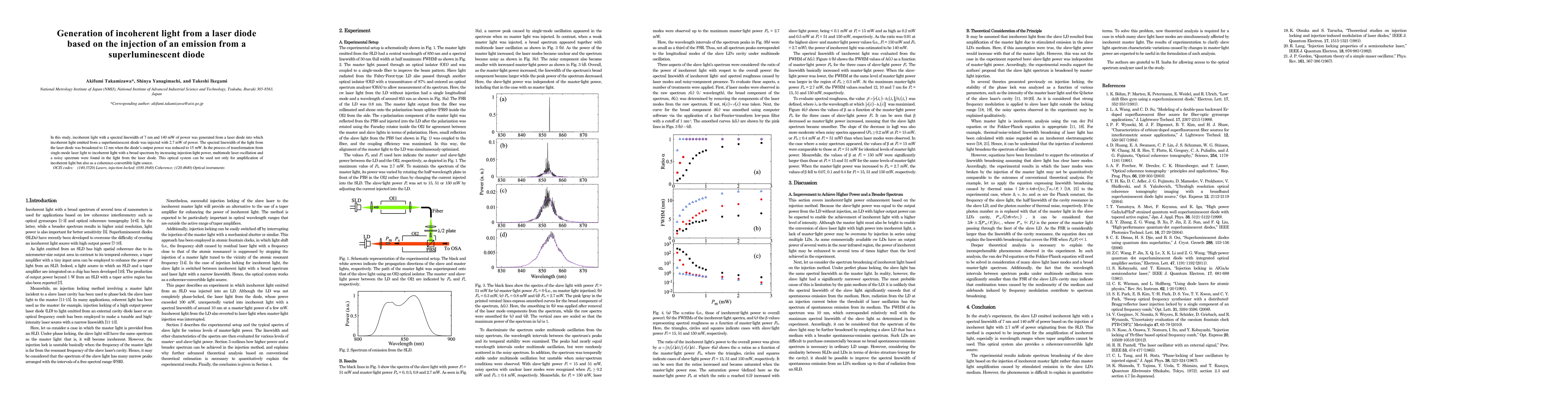 This study generates incoherent light from a laser diode by injecting incoherent light from a superluminescent diode, resulting in a broadened spectral linewidth and reduced output power. The system demonstrates multimode oscillation and can serve as a coherence-convertible light source.