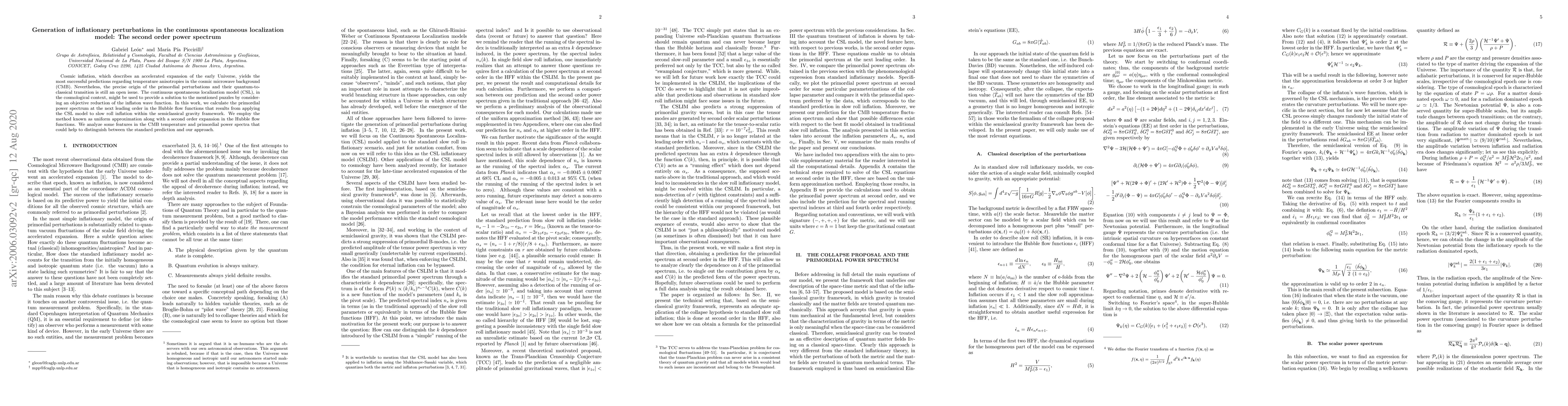 This paper investigates the generation of inflationary perturbations in the continuous spontaneous localization (CSL) model, calculating the second-order power spectrum within a semiclassical gravity framework. It aims to distinguish CSL predictions from standard inflation models through features in the cosmic microwave background (CMB) temperature and primordial power spectra.