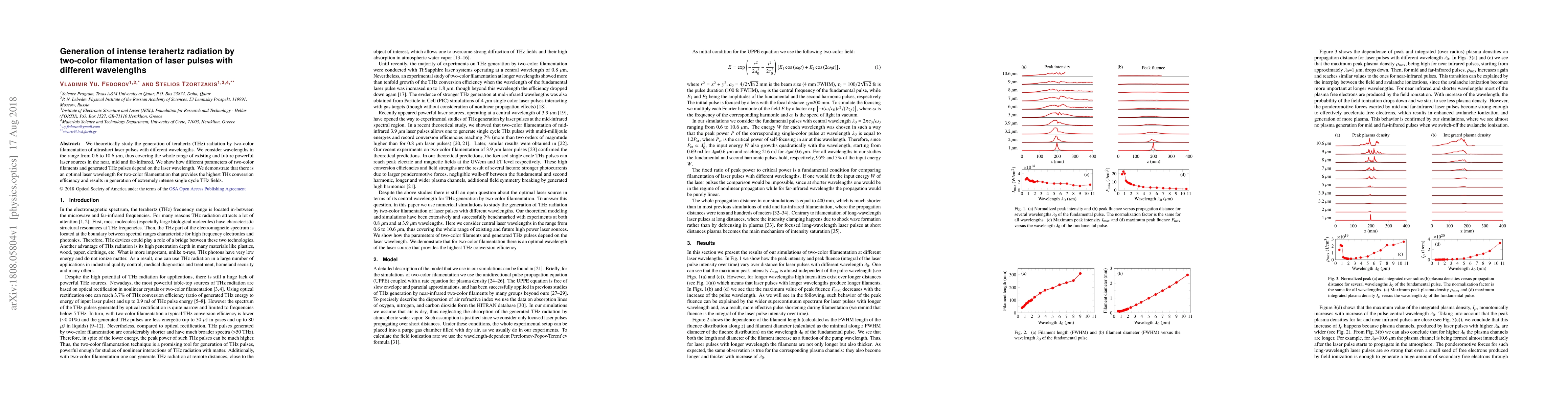 This paper theoretically investigates the generation of intense terahertz radiation via two-color filamentation of ultrashort laser pulses with varying wavelengths, ranging from 0.6 to 10.6 µm. It identifies an optimal wavelength that maximizes THz conversion efficiency and produces highly intense single-cycle THz fields.