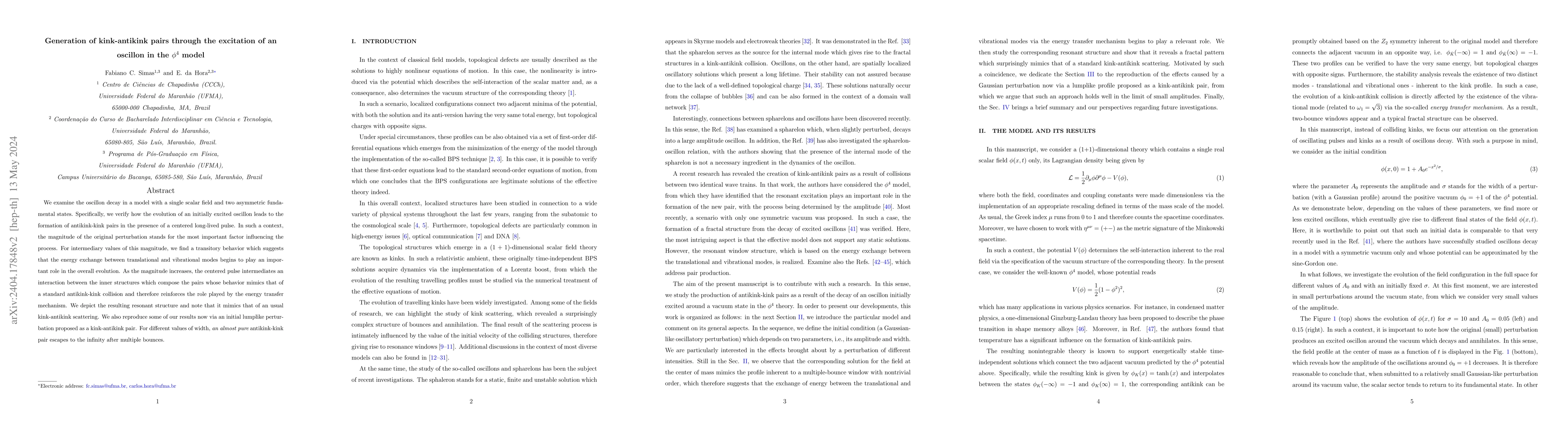 This research investigates the decay of an oscillon in a $\phi^4$ model, revealing that it generates kink-antikink pairs through an energy transfer mechanism, particularly influenced by the initial perturbation magnitude. Higher magnitudes result in resonant structures mimicking typical kink-antikink scattering.