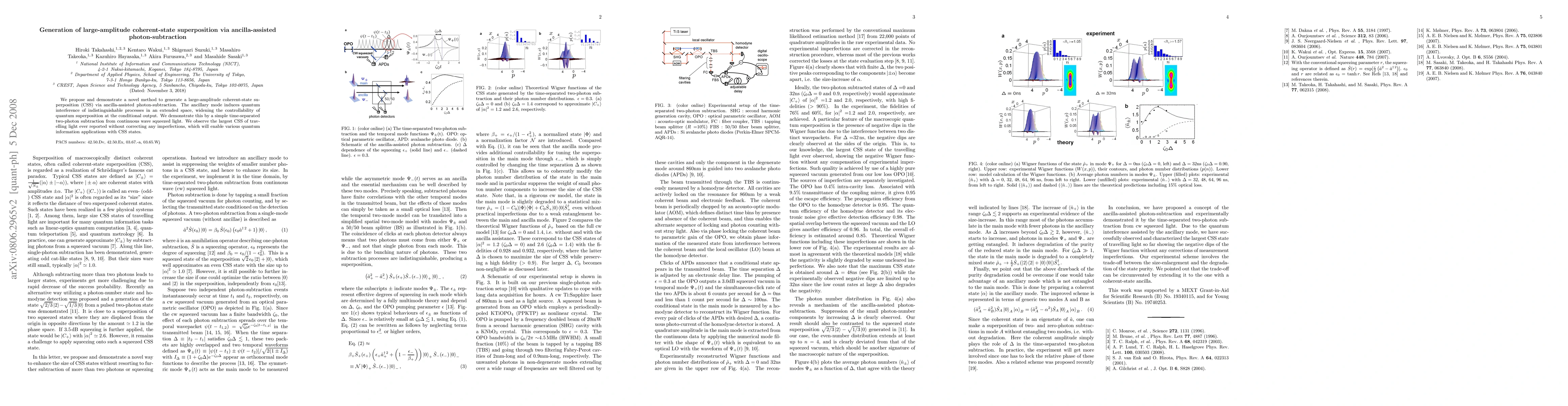 This paper proposes a new method for generating large-amplitude coherent-state superpositions using ancilla-assisted photon-subtraction, demonstrating quantum interference and enhanced controllability. The method is exemplified by time-separated two-photon subtraction from continuous-wave squeezed light, achieving the largest CSS reported to date without corrections, promising advancements in quantum information applications.
