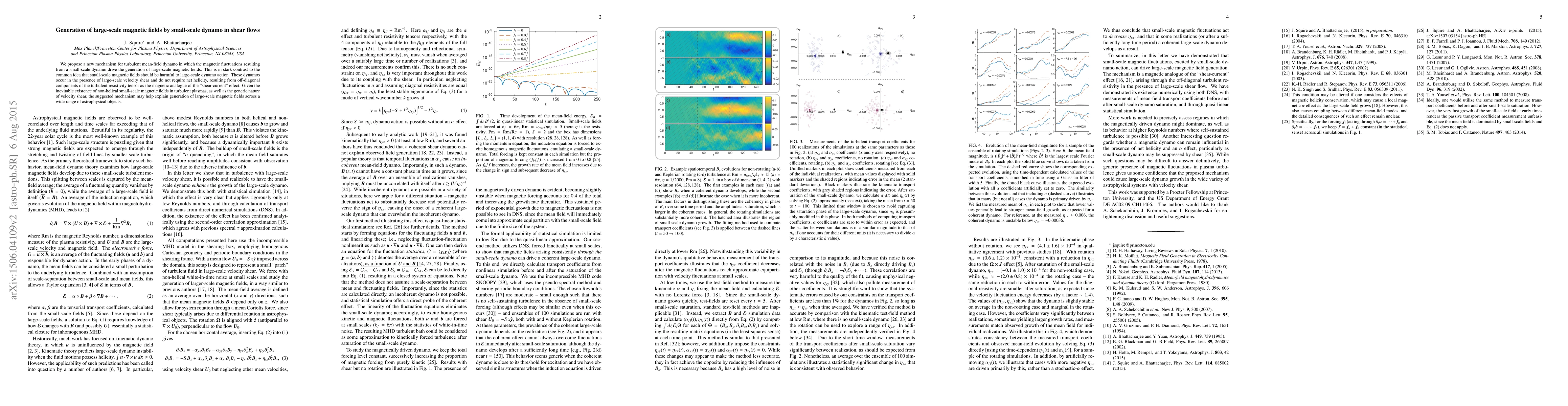 This paper proposes a novel mechanism for generating large-scale magnetic fields through small-scale dynamos driven by turbulent mean-field dynamos in shear flows, challenging the conventional view that small-scale fields hinder large-scale dynamo action. The mechanism does not require net helicity and is applicable across a broad spectrum of astrophysical objects.