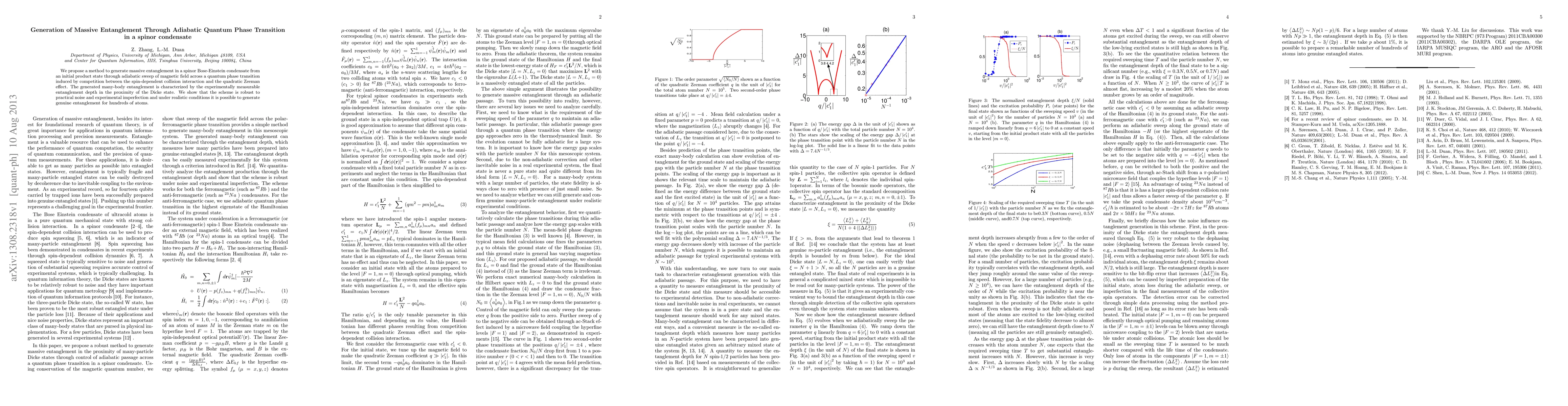 This paper proposes a method for generating massive entanglement in a spinor Bose-Einstein condensate via an adiabatic quantum phase transition, characterized by the entanglement depth near the Dicke state. The scheme is shown to be robust against noise and practical imperfections, enabling the creation of genuine entanglement for hundreds of atoms.
