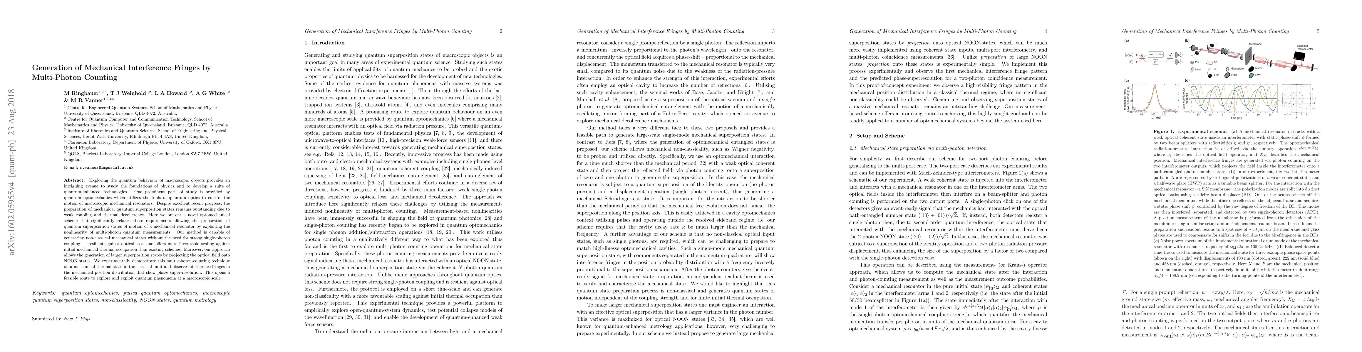 Researchers developed a method to generate mechanical interference fringes using multi-photon counting, allowing for quantum-enhanced technologies and exploring quantum phenomena at a macroscopic scale.