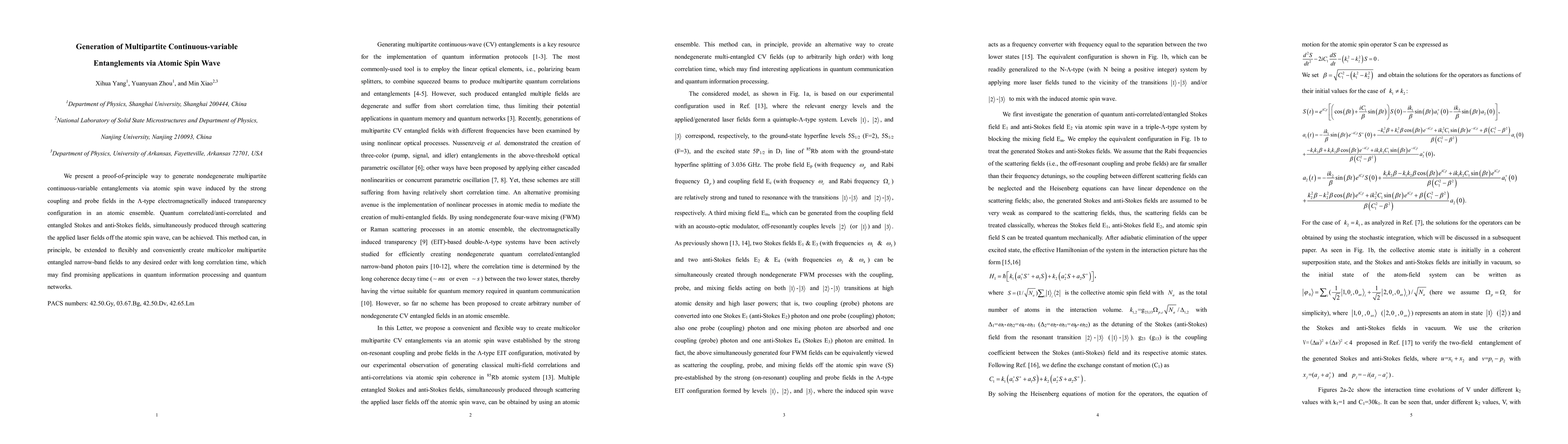 This paper proposes a method for generating multipartite continuous-variable entanglements using atomic spin waves in a Lambda-type configuration. The technique leverages strong coupling and probe fields to create quantum correlated/anti-correlated entangled fields, which could be extended to produce multicolor entangled states for quantum information processing and networks.