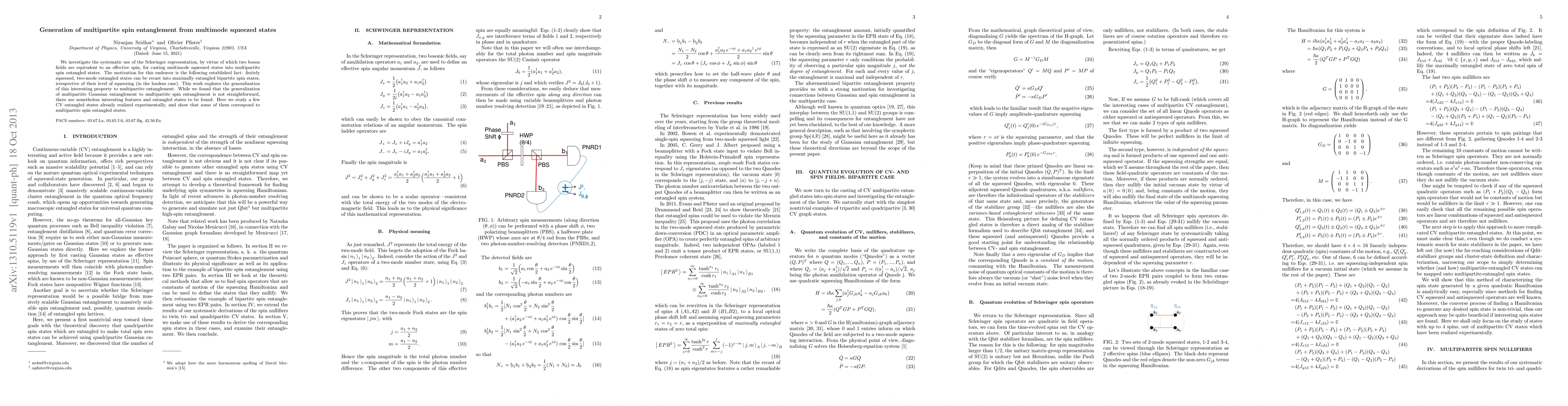 This paper explores the transformation of multimode squeezed states into multipartite spin entangled states using the Schwinger representation, demonstrating that certain experimentally realized continuous-variable entangled states can be recast as multipartite spin entanglement. The study highlights the complexities and interesting features of this generalization.