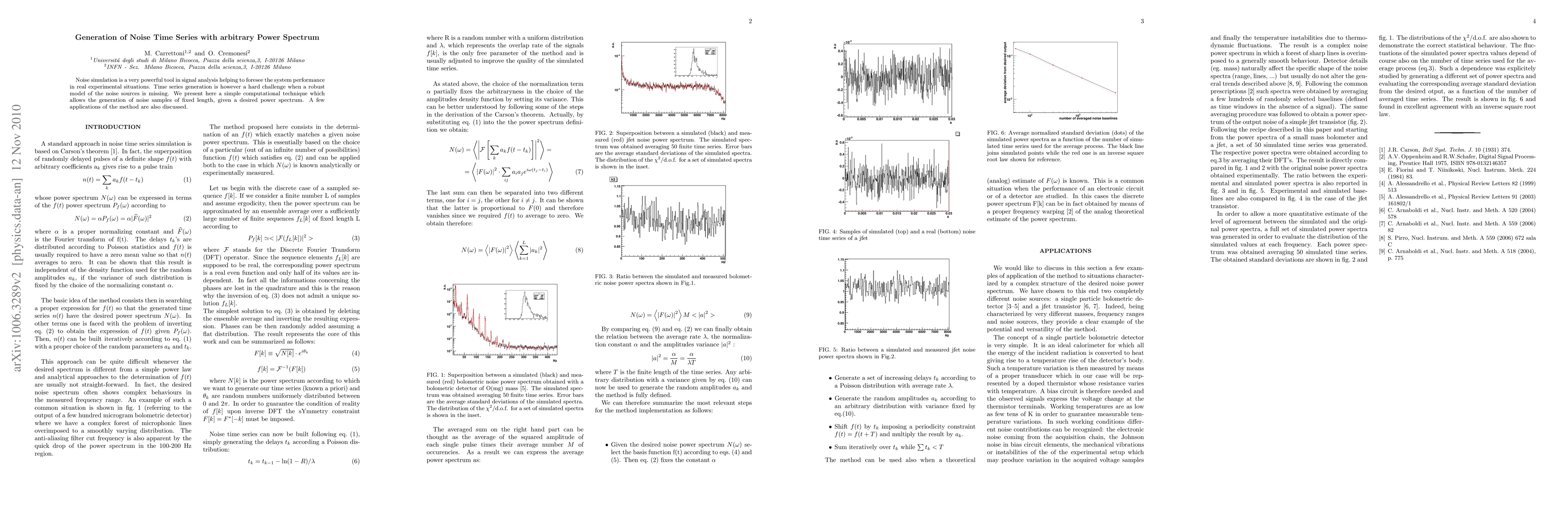 Noise simulation is a very powerful tool in signal analysis helping to foresee the system performance in real experimental situations. Time series generation is however a hard challenge when a robust model of the noise sources is missing. We present here a simple computational technique which allows the generation of noise samples of fixed length, given a desired power spectrum. A few applications of the method are also discussed.