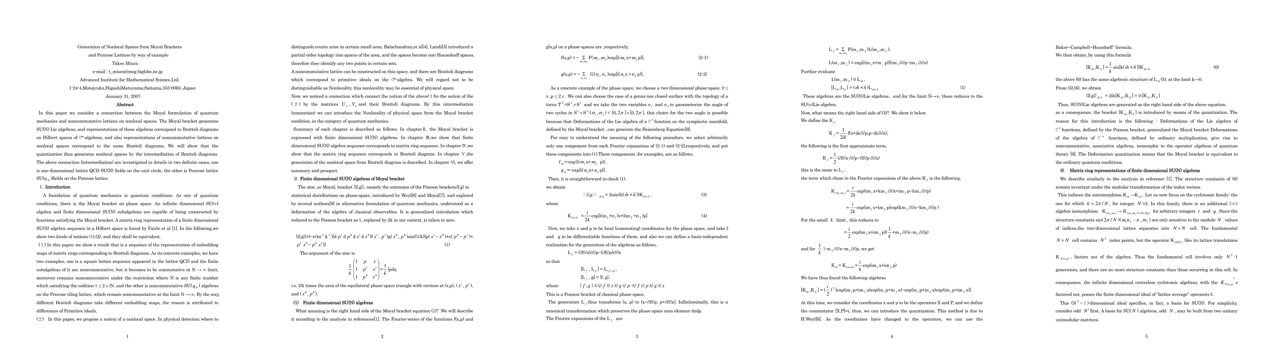 In this paper we consider a connection between the Moyal formuration of quantum mechanics and noncommutative lattices on nonlocal spaces. The Moyal bracket generates SU(N) Lie algebras,and representations of these algebras correspond to Bratteli diagrams on Hilbert spaces of C*-algebras, and also representations of noncommutative lattices on nonlocal spaces correspond to the same diagrams. We will show that the quantization thus generates nonlocal spaces by the intermediation of Bratteli diagrams.The above connection are investigated in details in two definite cases, one is one-dimensional lattice QCD SU(N) fields on the unit circle, the other is Penrose lattice SU-type Lie algebra fields on the Penrose lattice.