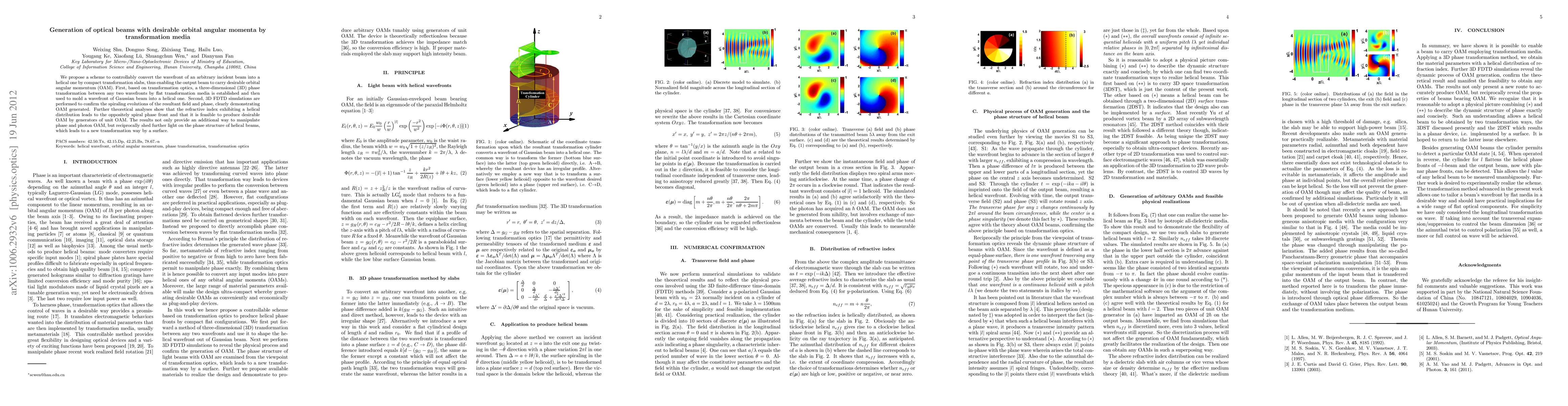 This paper proposes a method using transformation optics to convert an arbitrary Gaussian beam into a helical beam with desired orbital angular momentum (OAM) via compact transformation slabs. Simulation and theoretical analysis confirm the generation of OAM, revealing a helical refractive index distribution that induces the spiral phase front.