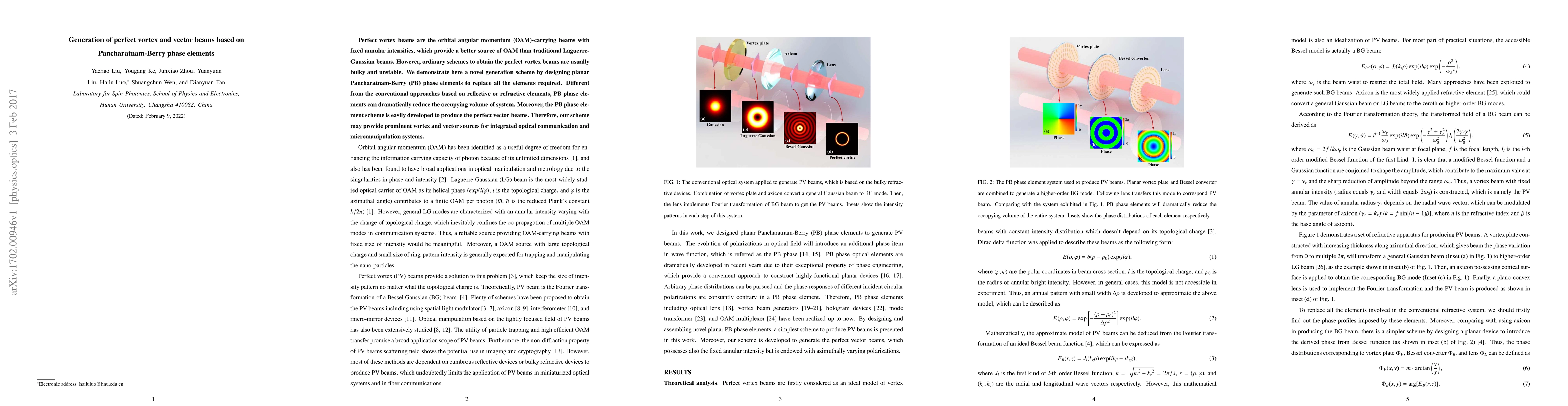 This paper presents a novel method for generating perfect vortex beams using planar Pancharatnam-Berry phase elements, which replace bulky and unstable traditional components. This approach significantly reduces system volume and can also produce perfect vector beams, offering improved sources for optical communication and micromanipulation.