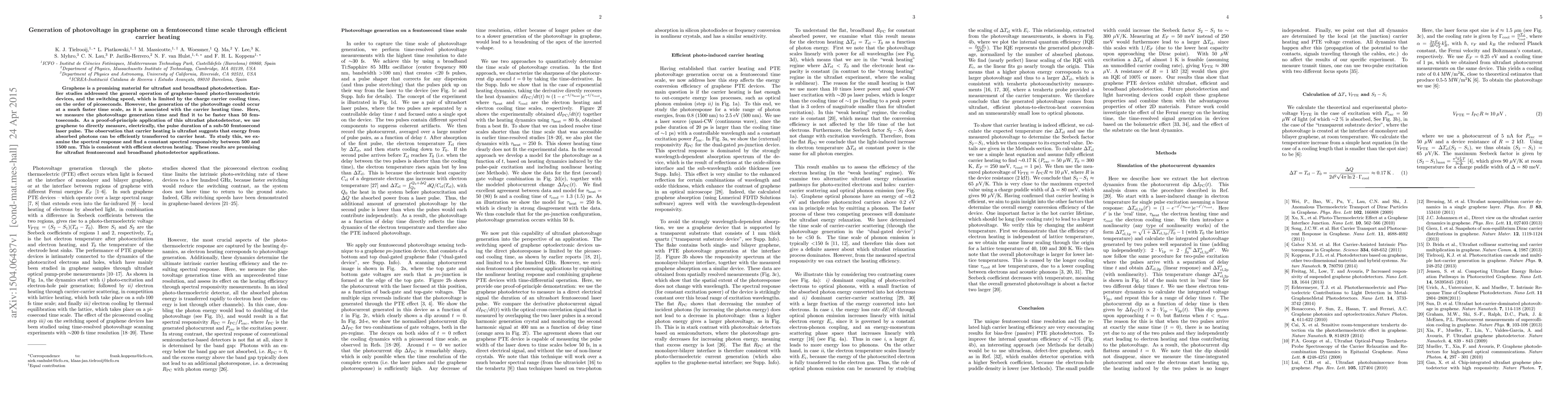 This study demonstrates that photovoltage generation in graphene occurs on a femtosecond time scale, significantly faster than previously thought due to efficient carrier heating. The research shows that graphene can electrically measure sub-50 femtosecond laser pulses, indicating its potential for ultrafast and broadband photodetector applications.