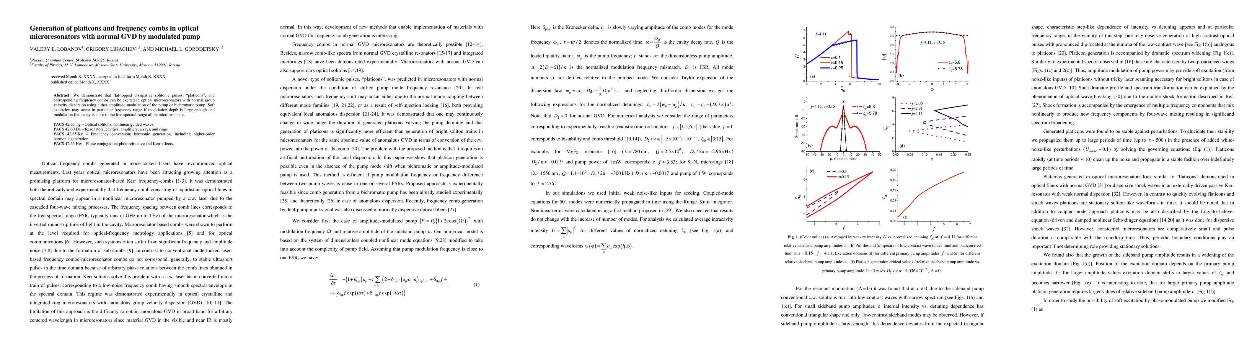 Researchers demonstrate that microresonators can generate flat-topped pulses, platicons, and frequency combs with normal group velocity dispersion using modulated pump techniques.