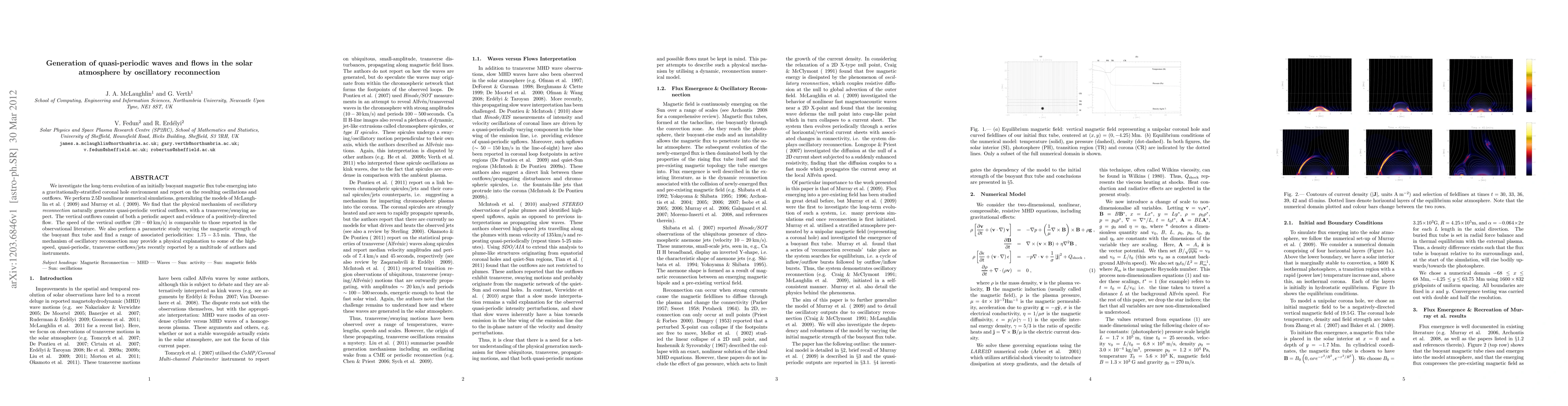 We investigate the long-term evolution of an initially buoyant magnetic flux tube emerging into a gravitationally-stratified coronal hole environment and report on the resulting oscillations and outflows. We perform 2.5D nonlinear numerical simulations, generalizing the models of McLaughlin et al. (2009) and Murray et al. (2009). We find that the physical mechanism of oscillatory reconnection naturally generates quasi-periodic vertical outflows, with a transverse/swaying aspect. The vertical outflows consist of both a periodic aspect and evidence of a positively-directed flow. The speed of the vertical outflow (20-60 km/s) is comparable to those reported in the observational literature. We also perform a parametric study varying the magnetic strength of the buoyant flux tube and find a range of associated periodicities: 1.75-3.5 min. Thus, the mechanism of oscillatory reconnection may provide a physical explanation to some of the high-speed, quasi-periodic, transverse outflows/jets recently reported by a multitude of authors and instruments.