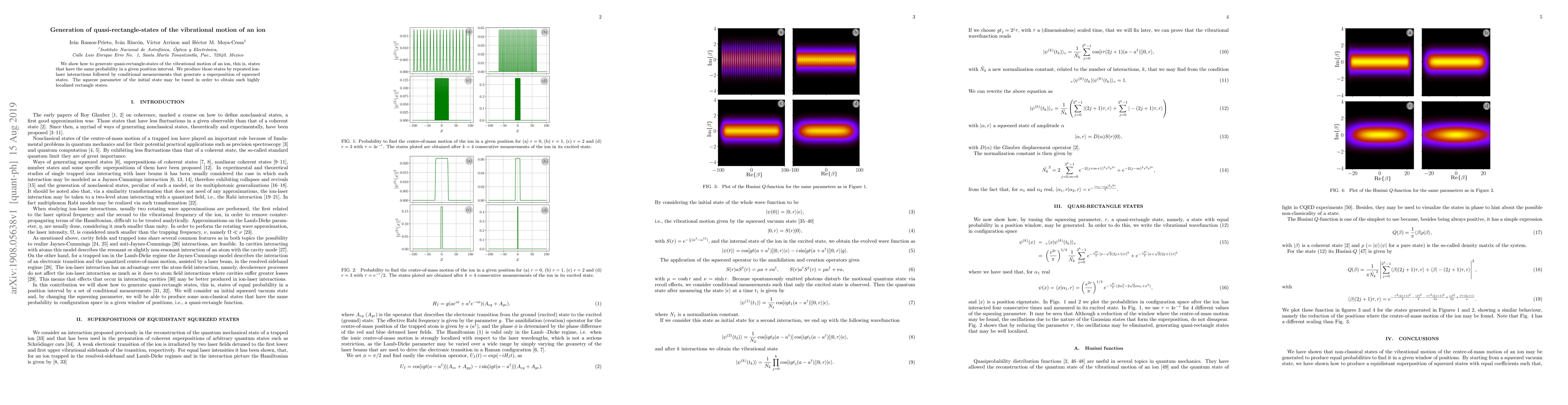 This research demonstrates a method to create highly localized vibrational states, called quasi-rectangle-states, in trapped ions using repeated laser interactions and conditional measurements. These states exhibit equal probability within a specific position range, which can be adjusted by tuning the squeeze parameter of the initial state.