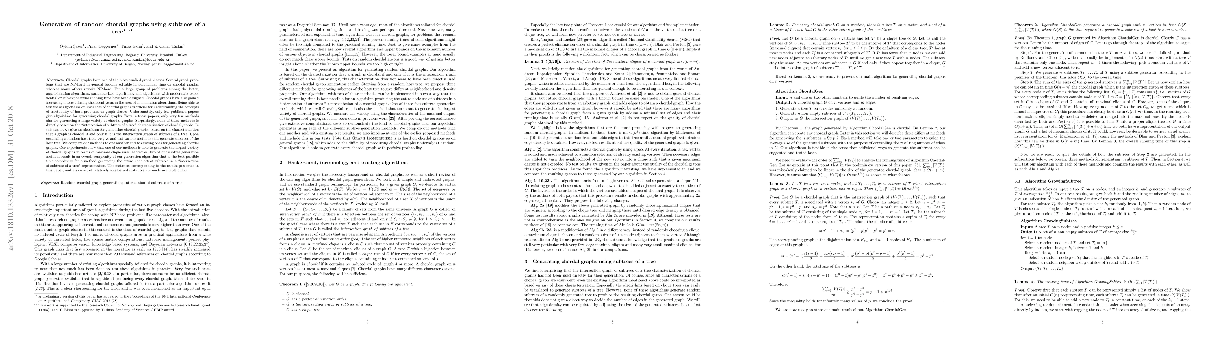 This paper presents an algorithm for generating random chordal graphs based on the "intersection of subtrees of a tree" characterization. The authors propose various methods to generate subtrees of a randomly created host tree and compare their performance, finding that one method yields the largest variety of chordal graphs in terms of maximal clique sizes.