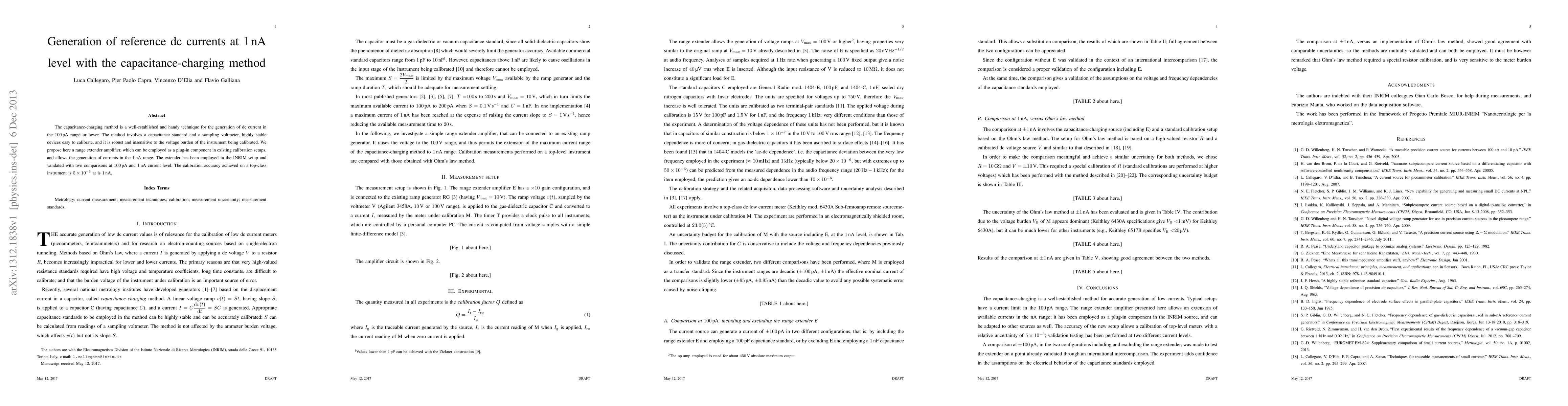 This paper proposes a range extender amplifier to enhance the capacitance-charging method for generating reference dc currents down to 1 nA, validated with a calibration accuracy of 10 ppm at 1 nA, demonstrating its robustness and insensitivity to voltage burden.