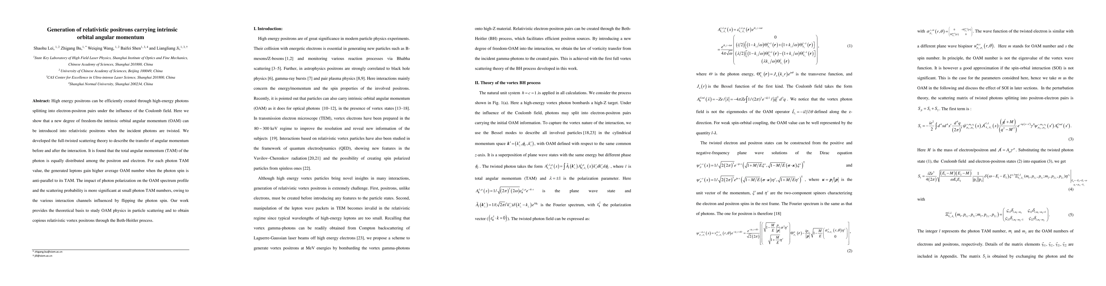 High energy positrons can be efficiently created through high-energy photons splitting into electron-positron pairs under the influence of the Coulomb field. Here we show that a new degree of freedom-the intrinsic orbital angular momentum (OAM) can be introduced into relativistic positrons when the incident photons are twisted. We developed the full-twisted scattering theory to describe the transfer of angular momentum before and after the interaction. It is found that the total angular momentum (TAM) of the photon is equally distributed among the positron and electron. For each photon TAM value, the generated leptons gain higher average OAM number when the photon spin is anti-parallel to its TAM. The impact of photon polarization on the OAM spectrum profile and the scattering probability is more significant at small photon TAM numbers, owing to the various interaction channels influenced by flipping the photon spin. Our work provides the theoretical basis to study OAM physics in particle scattering and to obtain copious relativistic vortex positrons through the Beth-Heitler process.