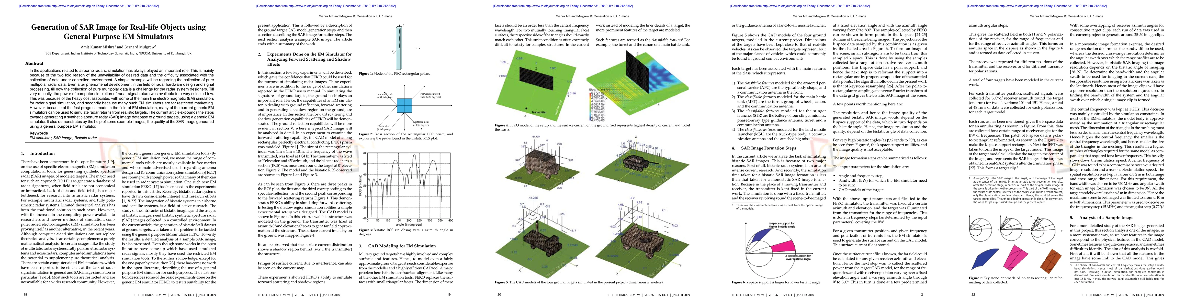 In the applications related to airborne radars, simulation has always played an important role. This is mainly because of the two fold reason of the unavailability of desired data and the difficulty associated with the collection of data under controlled environment. A simple example will be regarding the collection of pure multipolar radar data. Even after phenomenal development in the field of radar hardware design and signal processing, till now the collection of pure multipolar data is a challenge for the radar system designers. Till very recently, the power of computer simulation of radar signal return was available to a very selected few. This was because of the heavy cost associated with some of the main line electro magnetic (EM) simulators for radar signal simulation, and secondly because many such EM simulators are for restricted marketting. However, because of the fast progress made in the field of EM simulation, many of the current generic EM simulators can be used to simulate radar returns from realistic targets. The current article expounds the steps towards generating a synthetic aperture radar (SAR) image database of ground targets, using a eneric EM g simulator. It also demonstrates by the help of some example images, the quality of the SAR mage generated i using a general purpose EM simulator.