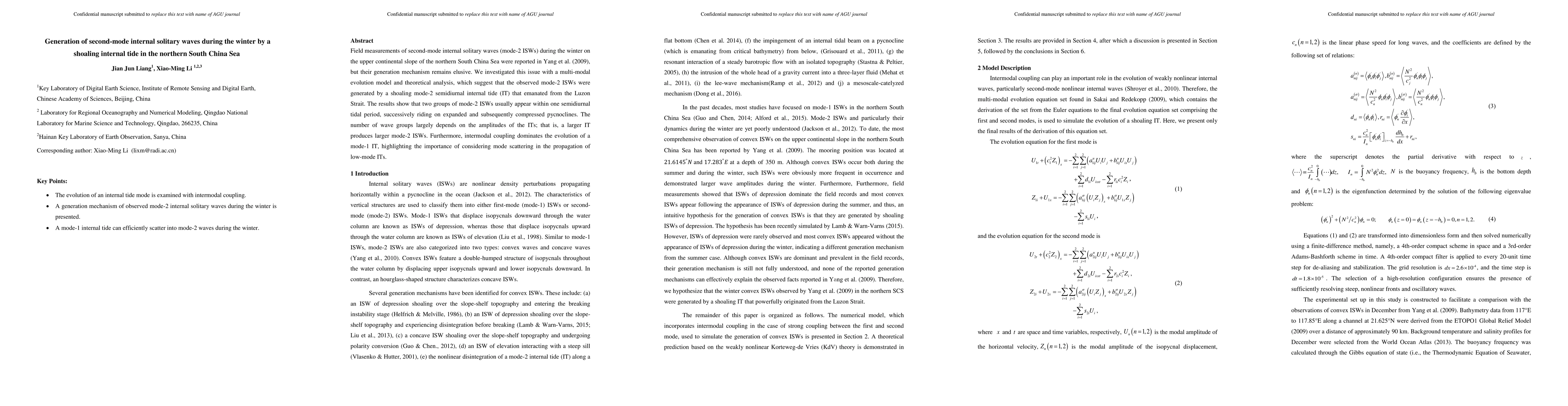 This study reveals that second-mode internal solitary waves in the northern South China Sea during winter are generated by a shoaling mode-2 internal tide from the Luzon Strait. The findings show that these waves appear in two groups within a semidiurnal tidal period, influenced by the amplitude of the internal tide and the process of intermodal coupling.