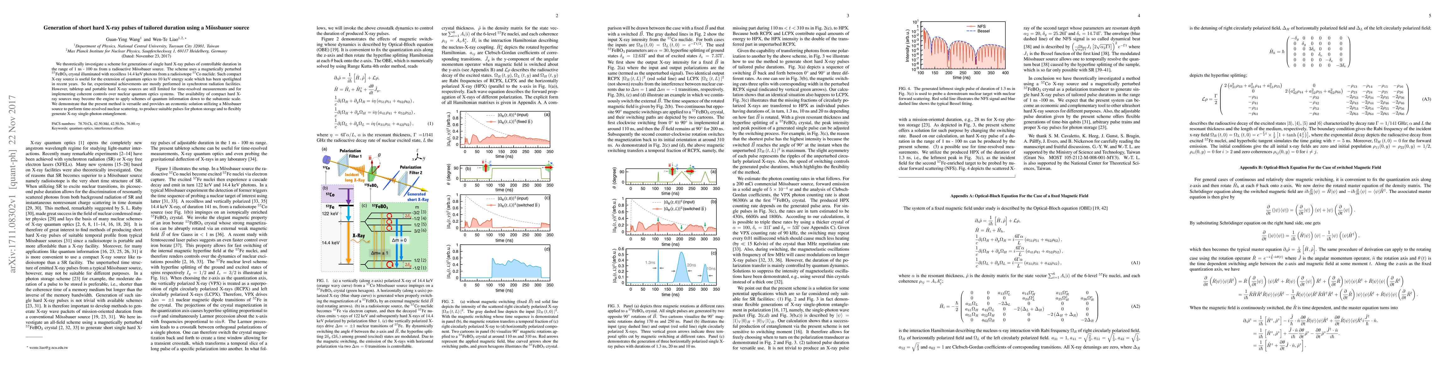 We theoretically investigate a scheme for generations of single hard X-ray pulses of controllable duration in the range of 1 ns - 100 ns from a radioactive M\"ossbauer source. The scheme uses a magnetically perturbed $^{57}$FeBO$_3$ crystal illuminated with recoilless 14.4 keV photons from a radioisotope $^{57}$Co nuclide. Such compact X-ray source is useful for the extension of quantum optics to 10 keV energy scale which has been spotlighted in recent years. So far, experimental achievements are mostly performed in synchrotron radiation facilities. However, tabletop and portable hard X-ray sources are still limited for time-resolved measurements and for implementing coherent controls over nuclear quantum optics systems. The availability of compact hard X-ray sources may become the engine to apply schemes of quantum information down to the subatomic scale. We demonstrate that the present method is versatile and provides an economic solution utilizing a M\"ossbauer source to perform time-resolved nuclear scattering, to produce suitable pulses for photon storage and to flexibly generate X-ray single-photon entanglement.