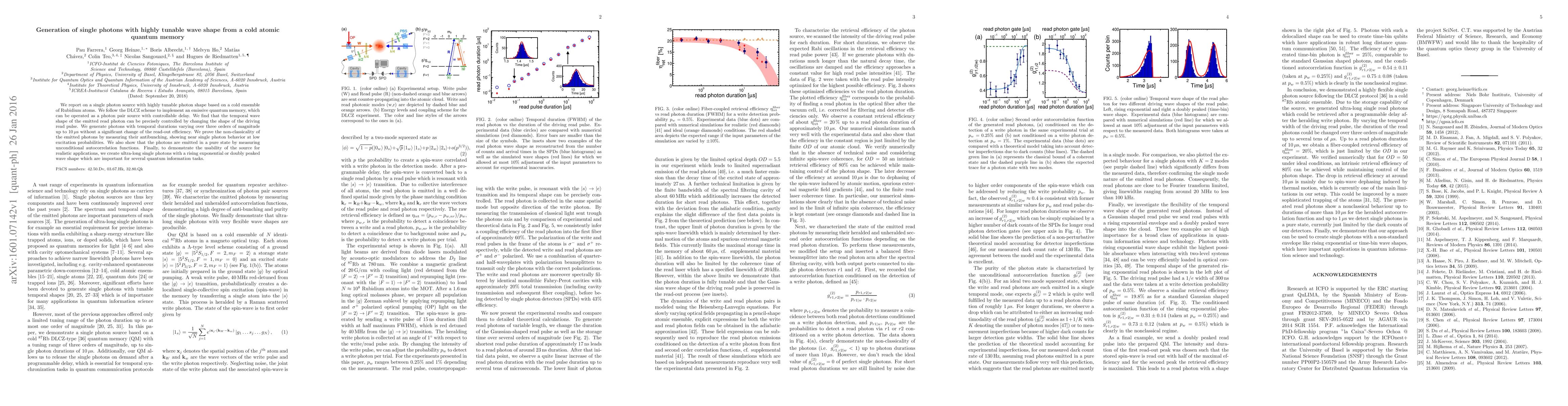 This paper presents a single photon source based on a cold Rubidium atomic ensemble, utilizing the DLCZ scheme for tunable photon shapes. The temporal wave shape can be precisely controlled by adjusting the read pulse, generating photons with durations up to 10 μs while maintaining high efficiency and demonstrating non-classicality through antibunching and pure state emission.