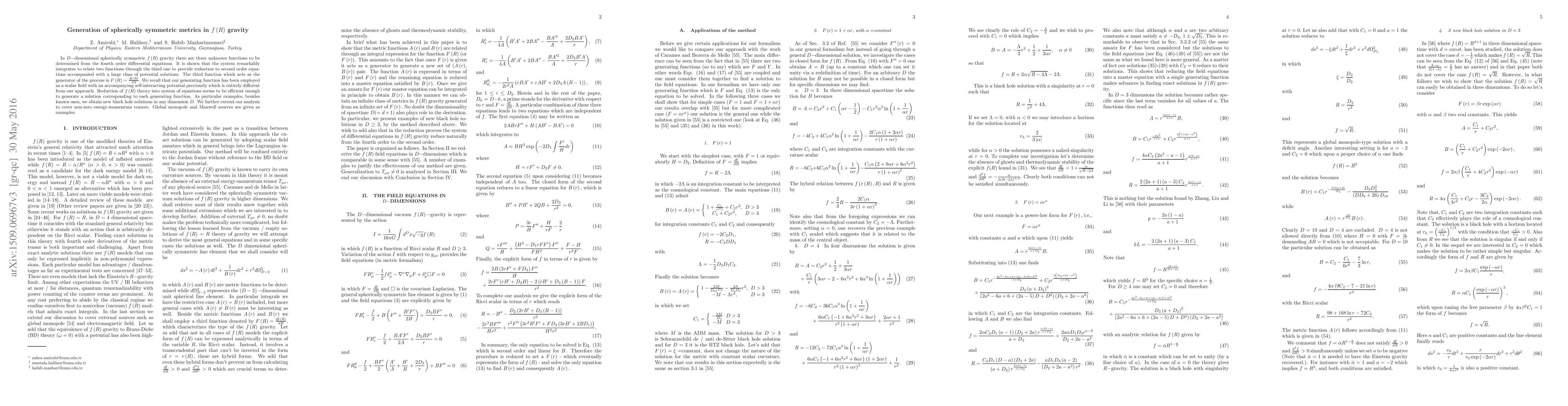 This paper explores the generation of spherically symmetric metrics in $f(R)$ gravity, demonstrating how the system reduces to second-order differential equations, allowing for a wide range of potential solutions. The study identifies $F(R)$ as a key generator function and provides new black hole solutions in any dimension, along with analyses involving non-zero energy-momentum tensors like global monopoles and Maxwell sources.