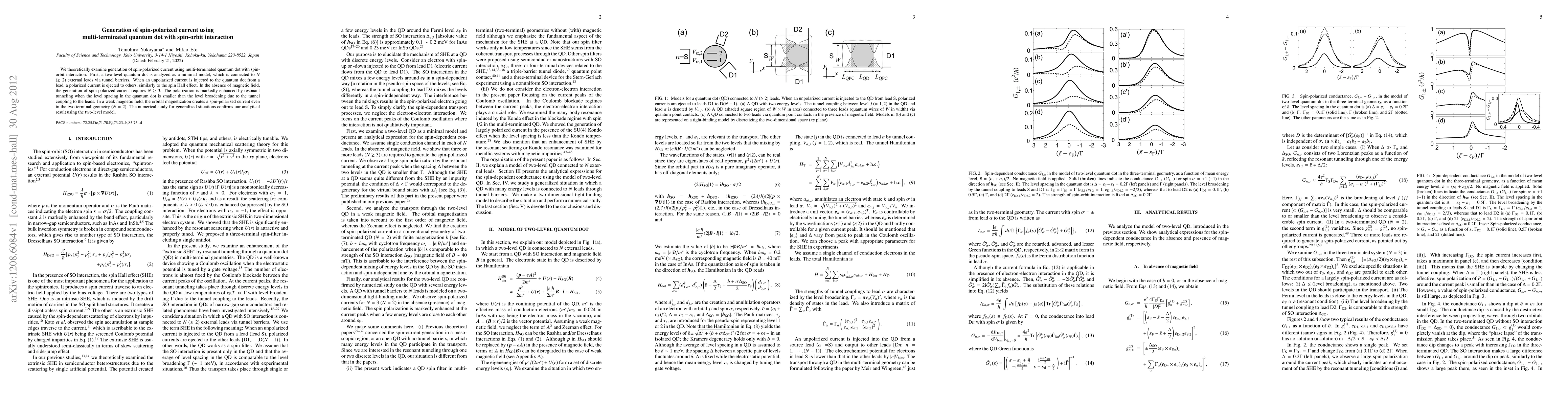 This paper theoretically investigates the generation of spin-polarized current in a multi-terminated quantum dot with spin-orbit interaction, showing that spin polarization can occur without an external magnetic field when connected to at least three leads. Polarization is enhanced by resonant tunneling conditions.