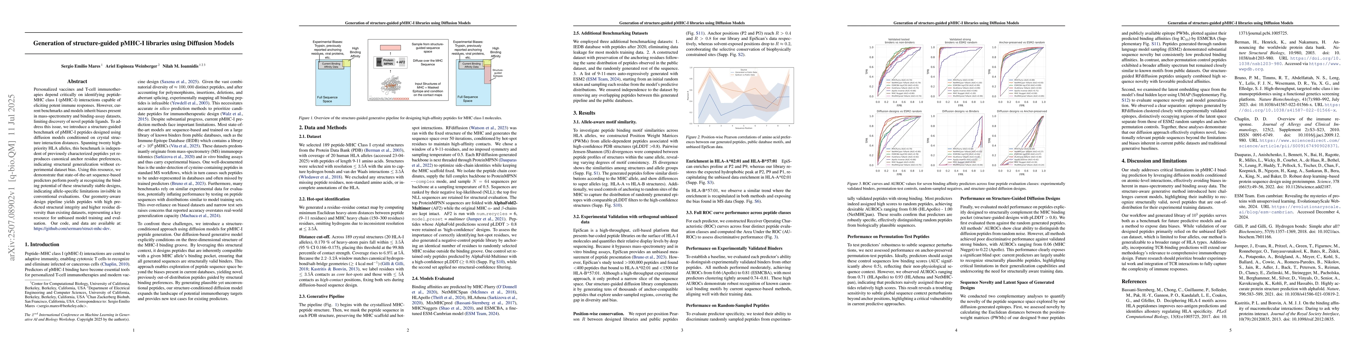 Personalized vaccines and T-cell immunotherapies depend critically on identifying peptide-MHC class I (pMHC-I) interactions capable of eliciting potent immune responses. However, current benchmarks and models inherit biases present in mass-spectrometry and binding-assay datasets, limiting discovery of novel peptide ligands. To address this issue, we introduce a structure-guided benchmark of pMHC-I peptides designed using diffusion models conditioned on crystal structure interaction distances. Spanning twenty high-priority HLA alleles, this benchmark is independent of previously characterized peptides yet reproduces canonical anchor residue preferences, indicating structural generalization without experimental dataset bias. Using this resource, we demonstrate that state-of-the-art sequence-based predictors perform poorly at recognizing the binding potential of these structurally stable designs, indicating allele-specific limitations invisible in conventional evaluations. Our geometry-aware design pipeline yields peptides with high predicted structural integrity and higher residue diversity than existing datasets, representing a key resource for unbiased model training and evaluation. Our code, and data are available at: https://github.com/sermare/struct-mhc-dev.