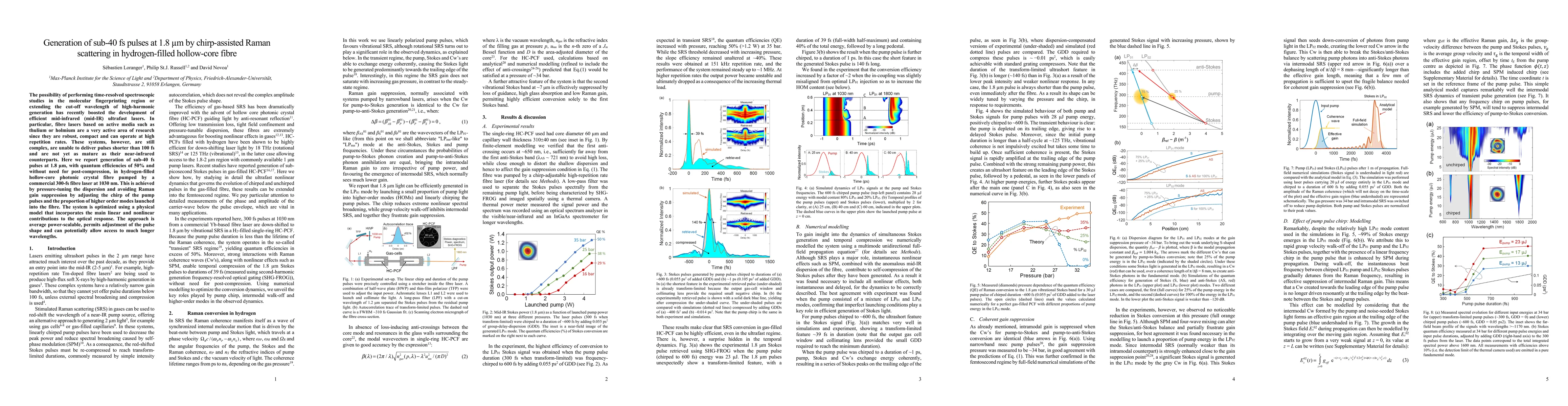 Researchers have successfully generated sub-40 fs pulses at 1.8 microns using a novel approach to pump a hydrogen-filled hollow-core fibre, achieving high quantum efficiency without post-compression.