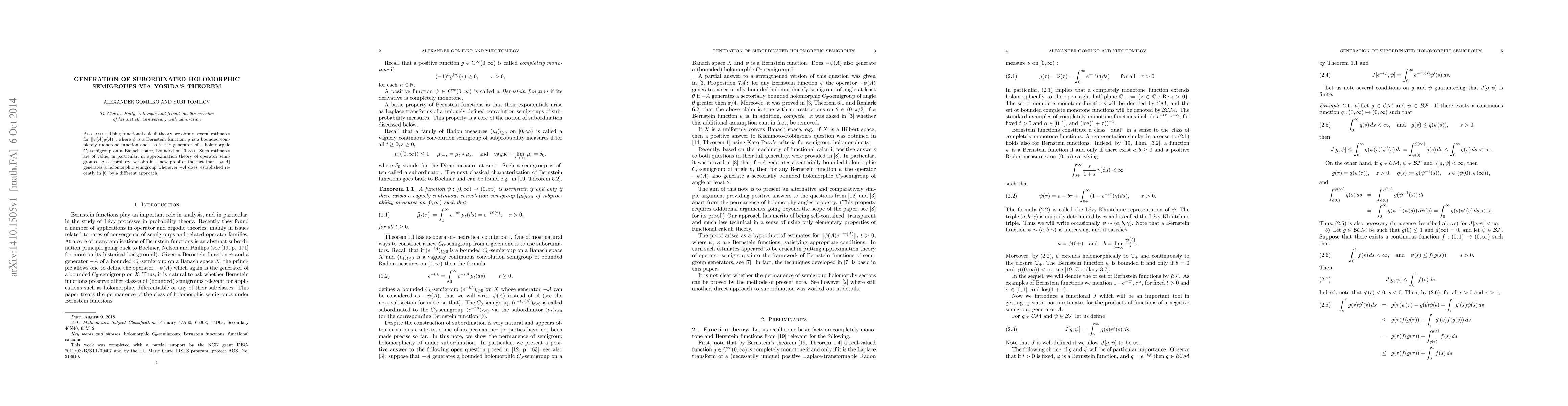 This paper utilizes functional calculi to derive estimates for $\|\psi(A)g(A)\|$, where $\psi$ is a Bernstein function and $g$ is a bounded completely monotone function. It provides a new proof of the generation of subordinated holomorphic semigroups via Yosida's theorem, enhancing approximation theory for operator semigroups.