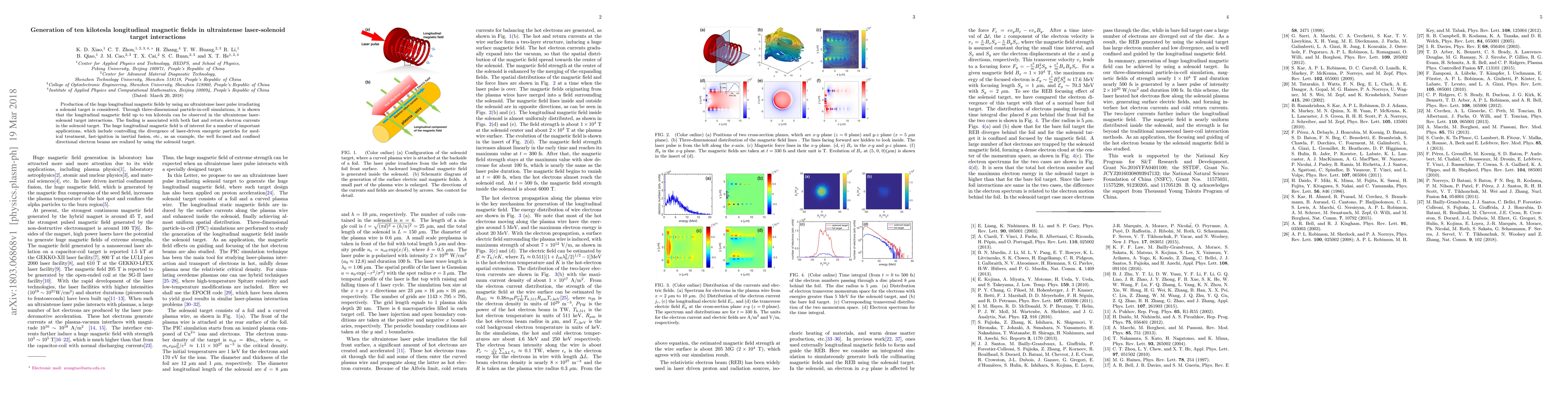 This research demonstrates the generation of longitudinal magnetic fields up to ten kilotesla through ultraintense laser interactions with solenoid targets, as shown by 3D particle-in-cell simulations. The significant magnetic fields are attributed to fast and return electron currents in the target, with potential applications in medical treatments and inertial fusion.