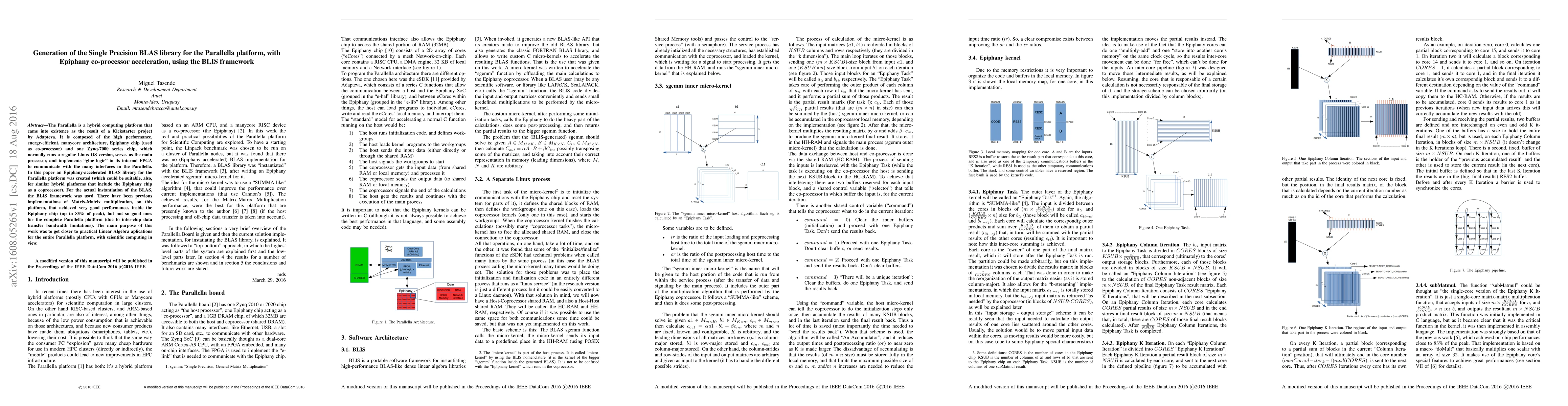 Researchers created a high-performance BLAS library for the Parallella platform, leveraging Epiphany co-processor acceleration to accelerate matrix operations, aiming to enable practical linear algebra applications on the entire platform.