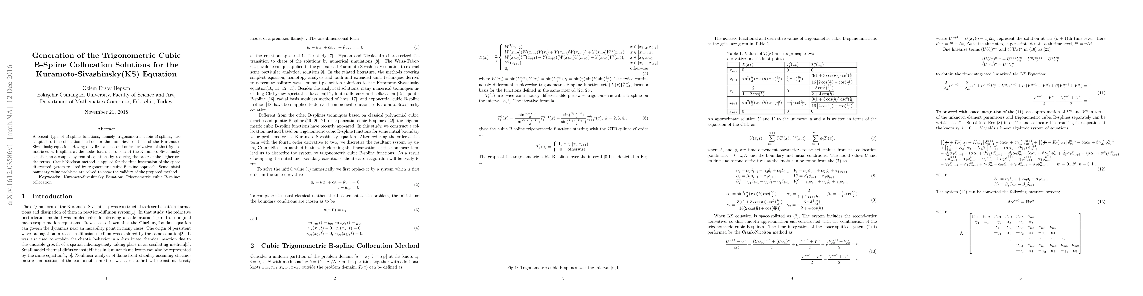 This paper proposes a trigonometric cubic B-spline collocation method for solving the Kuramoto-Sivashinsky equation, converting higher-order terms into a coupled system due to limited derivative information. The Crank-Nicolson method is used for time integration, and initial boundary value problems demonstrate the method's effectiveness.