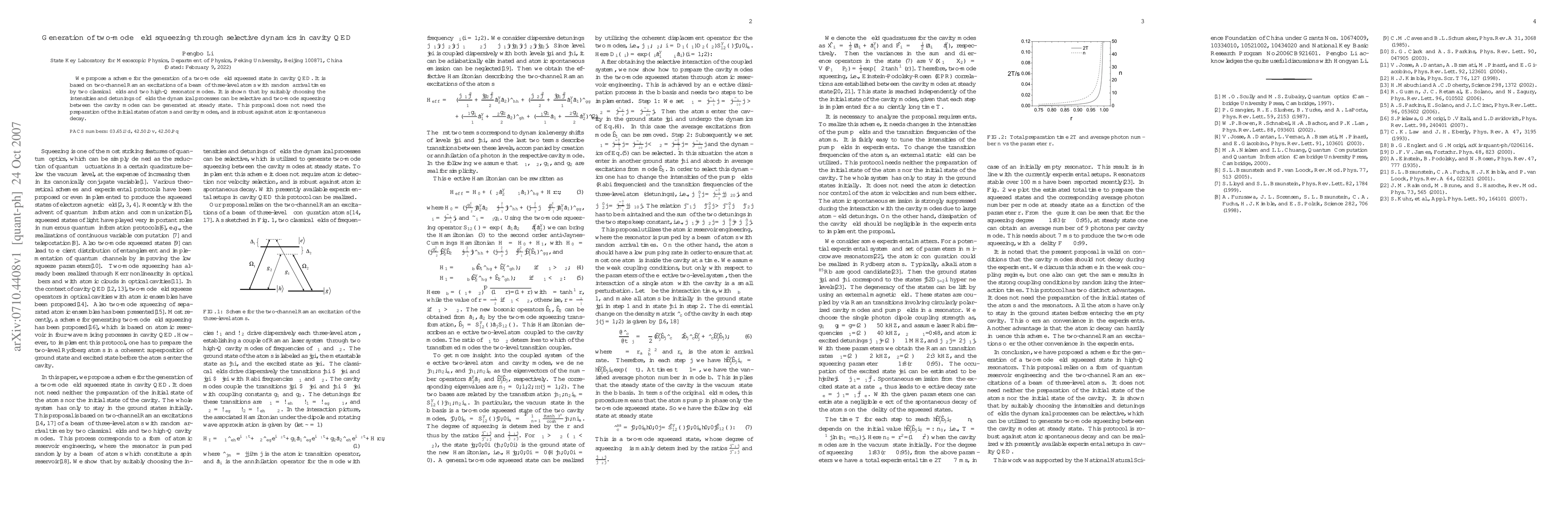 This paper proposes a method for generating two-mode field squeezing in cavity QED using two-channel Raman excitations of three-level atoms. The scheme selectively generates two-mode squeezing through dynamic processes without requiring specific initial states and is resilient to atomic decay.