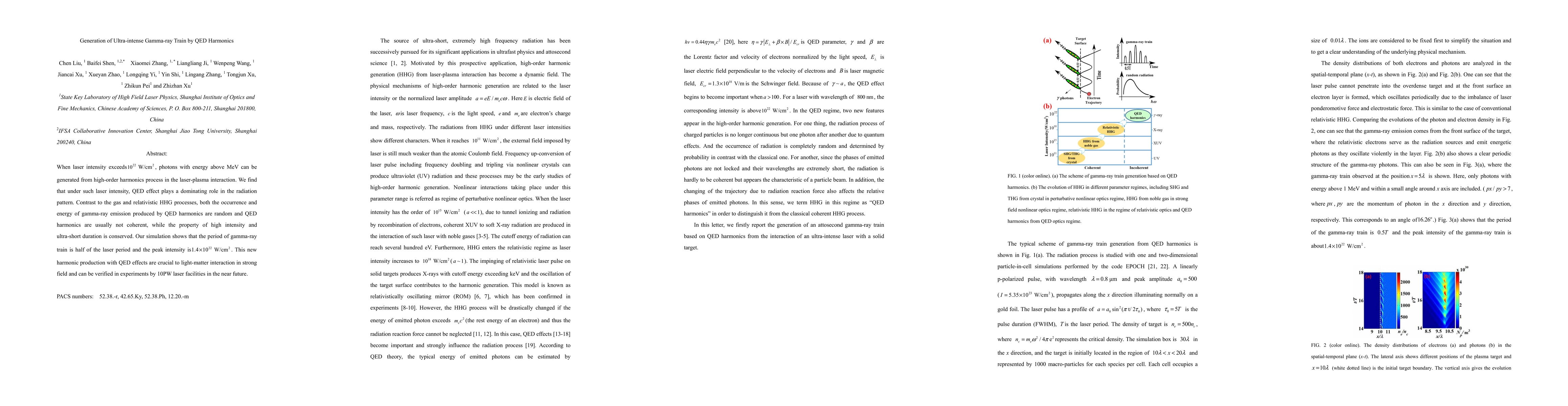 When laser intensity exceeds 10^22W/cm^2, photons with energy above MeV can be generated from high-order harmonics process in the laser-plasma interaction. We find that under such laser intensity, QED effect plays a dominating role in the radiation pattern. Contrast to the gas and relativistic HHG processes, both the occurrence and energy of gamma-ray emission produced by QED harmonics are random and QED harmonics are usually not coherent, while the property of high intensity and ultra-short duration is conserved. Our simulation shows that the period of gamma-ray train is half of the laser period and the peak intensity is 1.4e22W/cm^2. This new harmonic production with QED effects are crucial to light-matter interaction in strong field and can be verified in experiments by 10PW laser facilities in the near future.