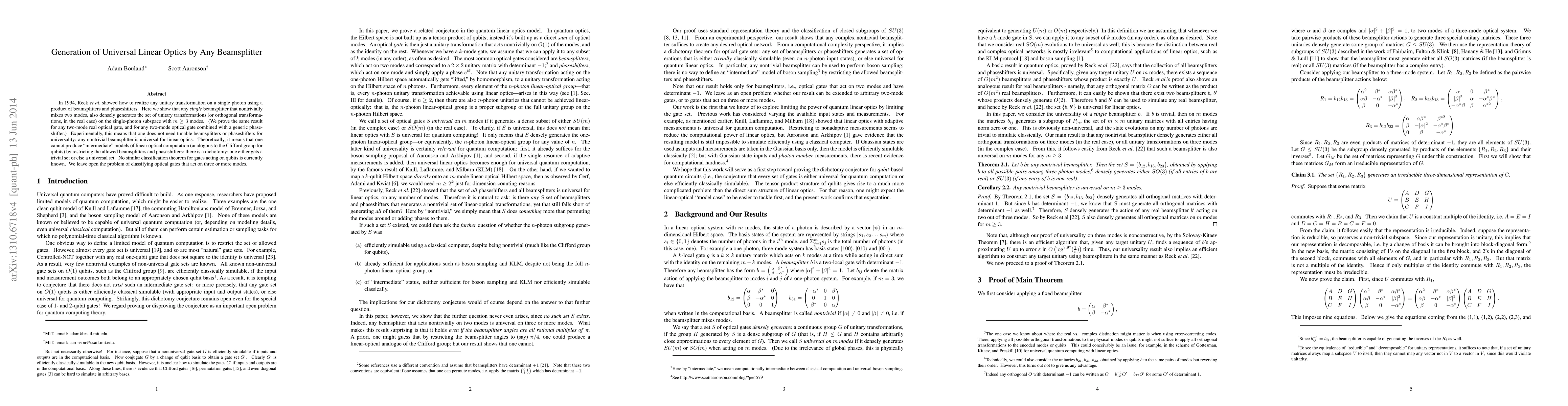 Researchers demonstrate that a single non-trivial beamsplitter can generate any unitary transformation on a single photon with three or more modes, making it universal for linear optics.