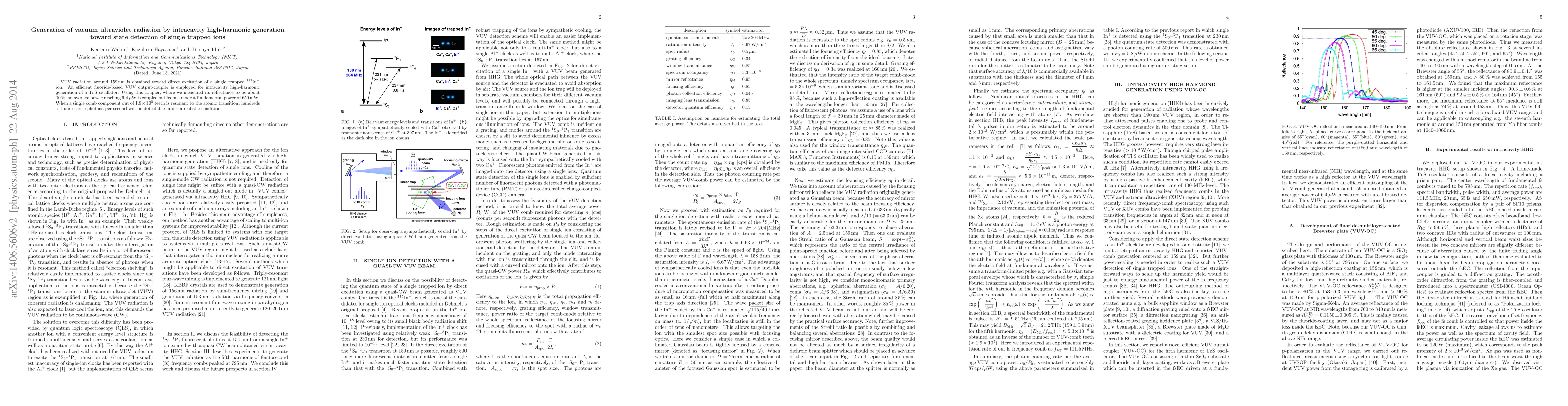 VUV radiation around 159 nm is obtained toward direct excitation of a single trapped $^{115}$In$^{+}$ ion. An efficient fluoride-based VUV output-coupler is employed for intracavity high-harmonic generation of a Ti:S oscillator. Using this coupler, where we measured its reflectance to be about 90%, an average power reaching $6.4\,\mu$W is coupled out from a modest fundamental power of 650 mW. When a single comb component out of $1.9\times10^{5}$ teeth is resonant to the atomic transition, hundreds of fluorescence photons per second will be detectable under a realistic condition.