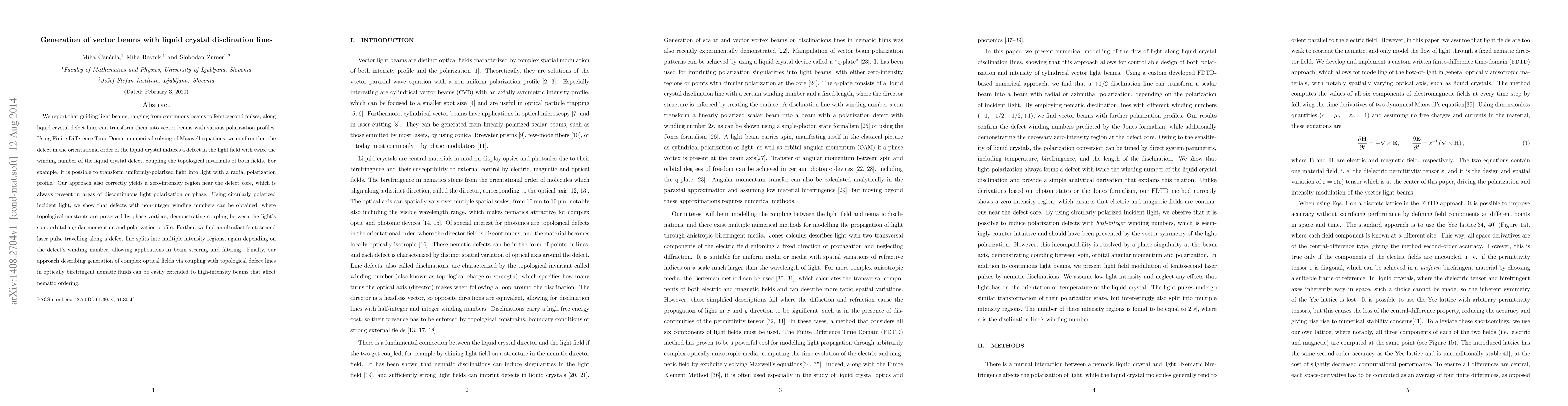 Researchers demonstrate that liquid crystal disclination lines can be used to generate vector beams with various polarization profiles, including radial and circular polarizations, and even split high-intensity femtosecond laser pulses into multiple intensity regions.