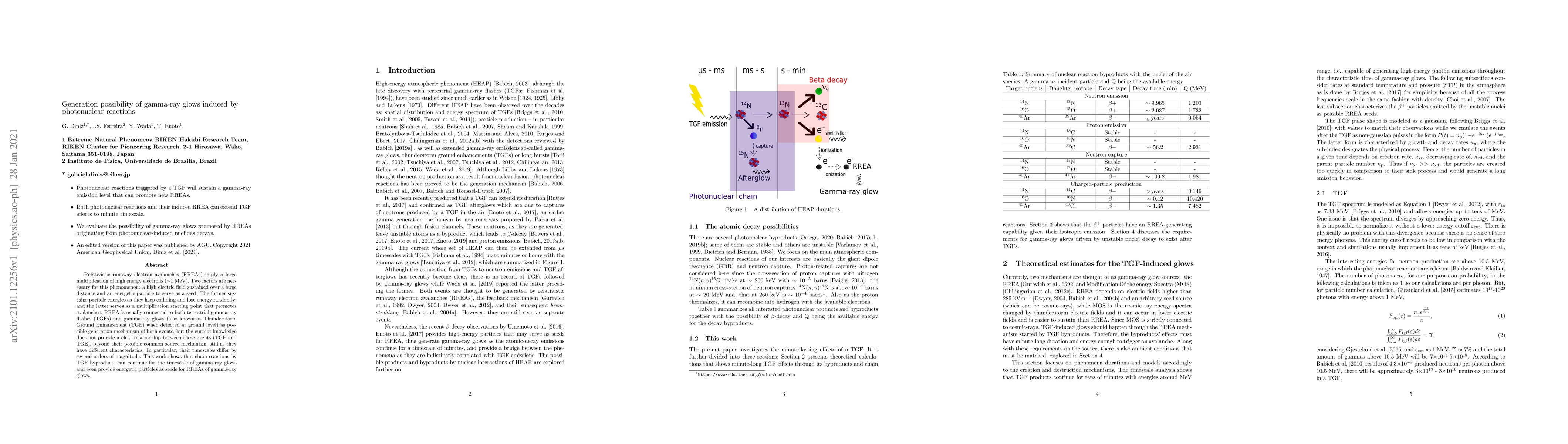 Relativistic runaway electron avalanches (RREAs) imply a large multiplication of high energy electrons (~1 MeV). Two factors are necessary for this phenomenon: a high electric field sustained over a large distance and an energetic particle to serve as a seed. The former sustains particle energies as they keep colliding and lose energy randomly, and the latter serves as a multiplication starting point that promotes avalanches. RREA is usually connected to both terrestrial gamma-ray flashes (TGFs) and gamma-ray glows (also known as Thunderstorm Ground Enhancement (TGE) when detected at ground level) as possible generation mechanism of both events, but the current knowledge does not provide a clear relationship between these events (TGF and TGE), beyond their possible common source mechanism, still as they have different characteristics. In particular, their timescales differ by several orders of magnitude. This work shows that chain reactions by TGF byproducts can continue for the timescale of gamma-ray glows and even provide energetic particles as seeds for RREAs of gamma-ray glows.