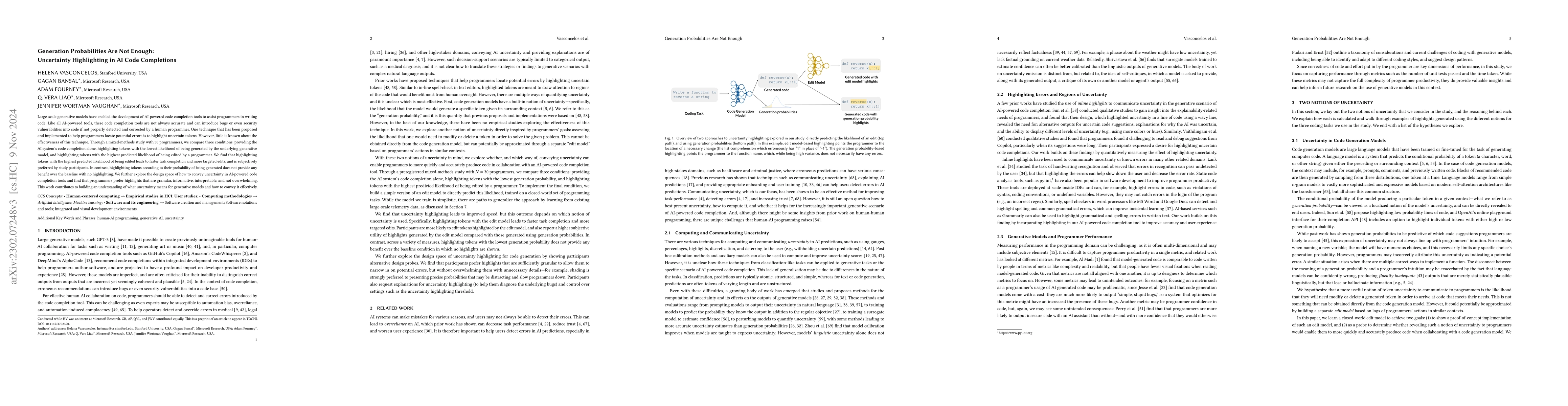 This study investigates the effectiveness of uncertainty highlighting in AI-powered code completion tools, finding that highlighting tokens likely to be edited by programmers leads to faster task completion and more precise edits. In contrast, highlighting tokens based on their generation probability does not improve performance.