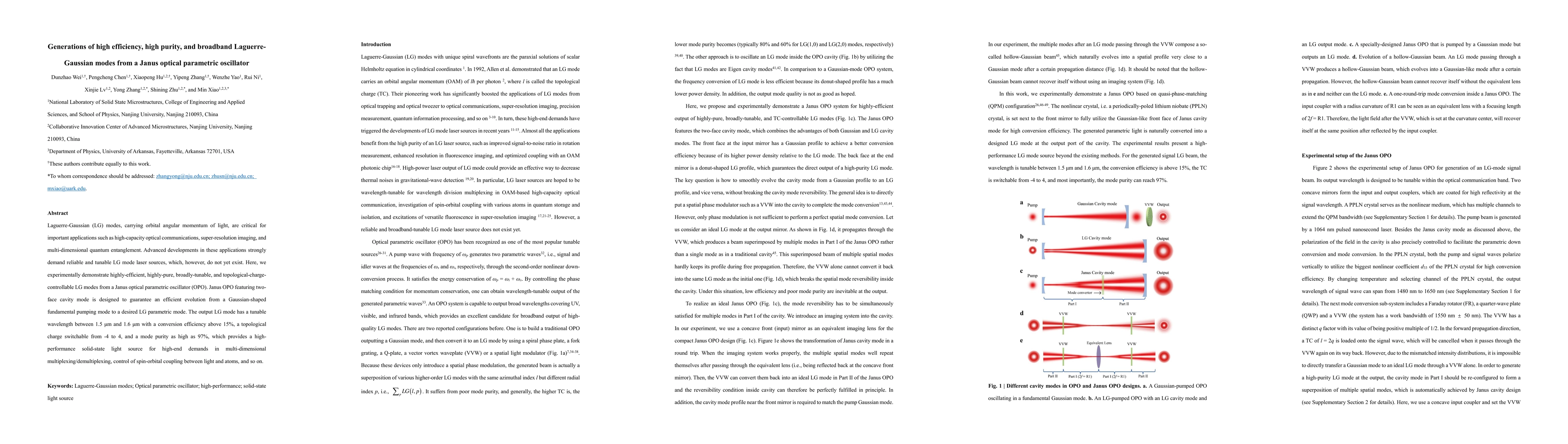 This paper demonstrates a Janus optical parametric oscillator generating highly efficient, pure, and broadband Laguerre-Gaussian modes with tunable topological charges, addressing the need for advanced light sources in optical communications and quantum entanglement. The system achieves a conversion efficiency above 15% and mode purity of 97%.
