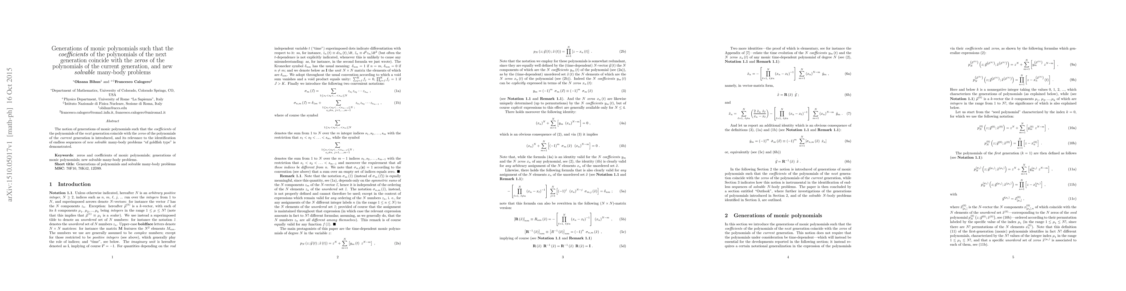 This paper introduces a concept of 'generations' of monic polynomials where subsequent generation's coefficients are zeros of the previous generation's polynomials. It also shows how this concept can help identify infinite sequences of solvable 'goldfish type' many-body problems.