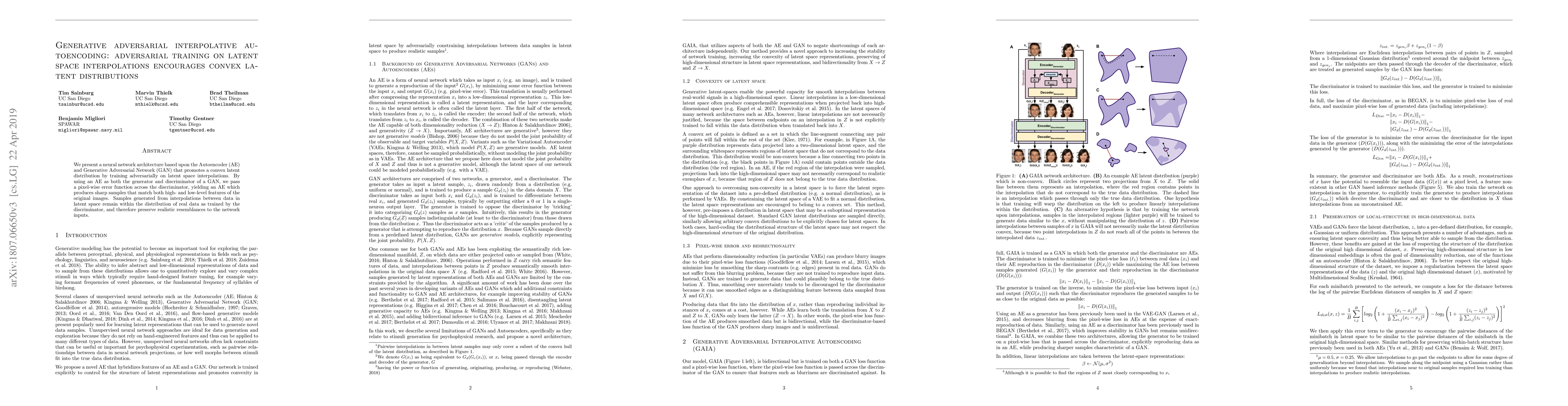 We present a neural network architecture based upon the Autoencoder (AE) and Generative Adversarial Network (GAN) that promotes a convex latent distribution by training adversarially on latent space interpolations. By using an AE as both the generator and discriminator of a GAN, we pass a pixel-wise error function across the discriminator, yielding an AE which produces non-blurry samples that match both high- and low-level features of the original images. Interpolations between images in this space remain within the latent-space distribution of real images as trained by the discriminator, and therfore preserve realistic resemblances to the network inputs. Code available at https://github.com/timsainb/GAIA