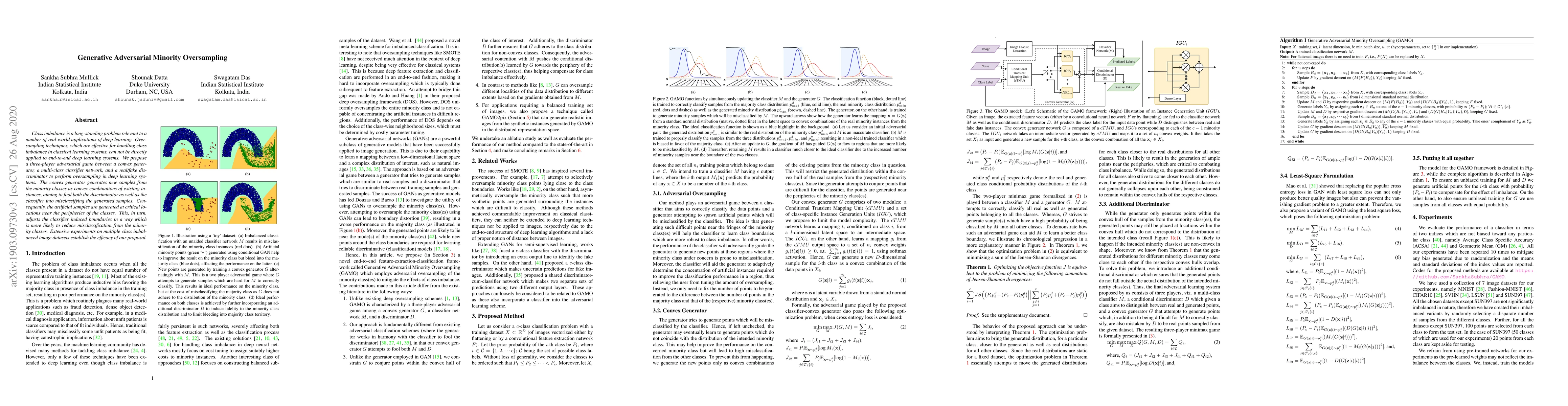This paper proposes a generative adversarial minority oversampling method to address class imbalance in deep learning systems. The method uses a three-player adversarial game to generate new minority class samples, which helps adjust classifier boundaries and reduce misclassification, as demonstrated by experiments on image datasets.