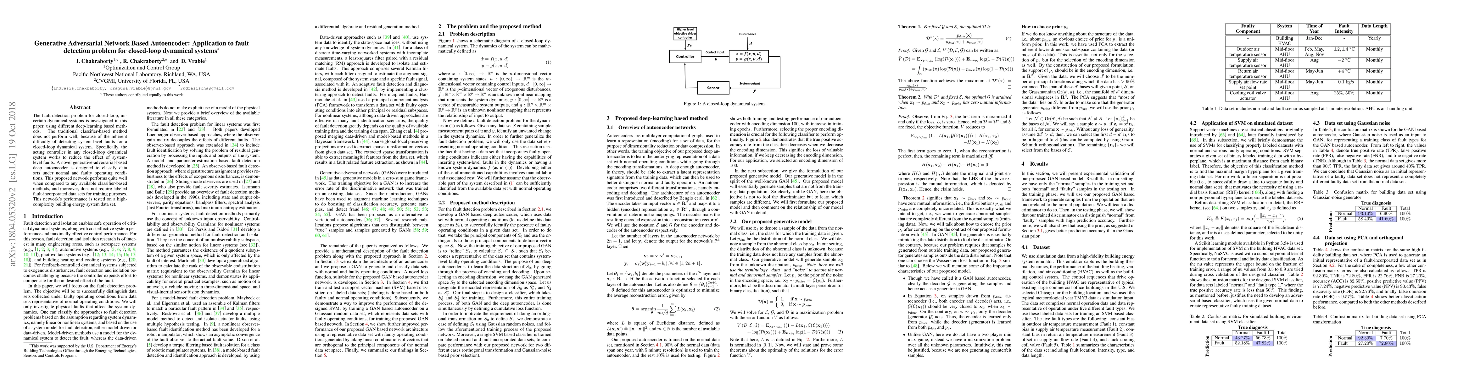 This paper proposes a Generative Adversarial Network based Autoencoder for fault detection in closed loop dynamical systems, outperforming traditional classifier methods. The novel network does not require labeled fault datasets and is tested successfully on a building energy system dataset.
