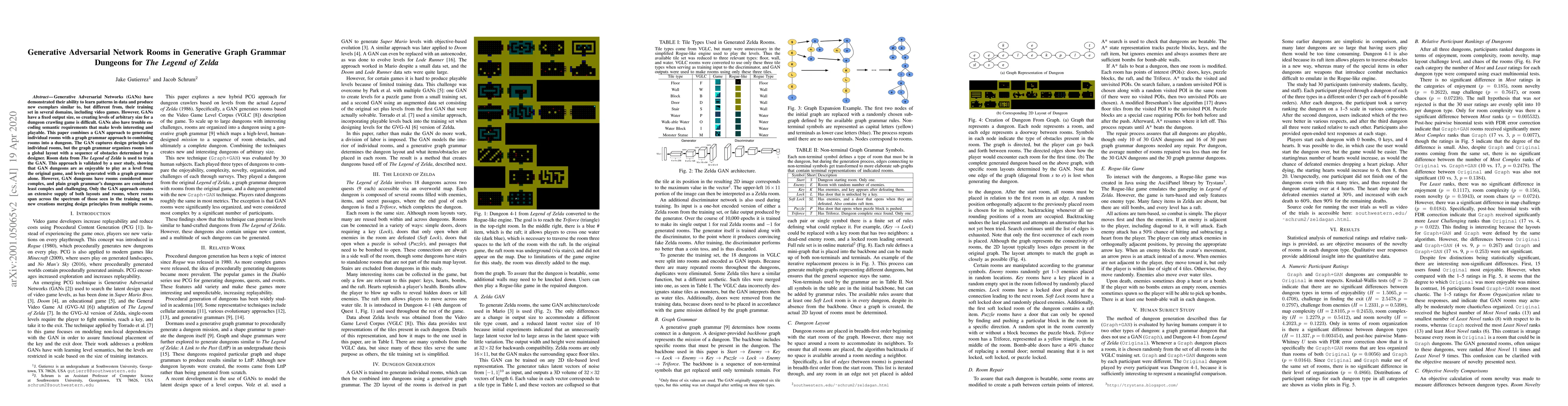 Researchers created a new method to generate levels for The Legend of Zelda game using a combination of Generative Adversarial Networks (GANs) and graph grammar, producing dungeons with complex rooms and varied layouts.