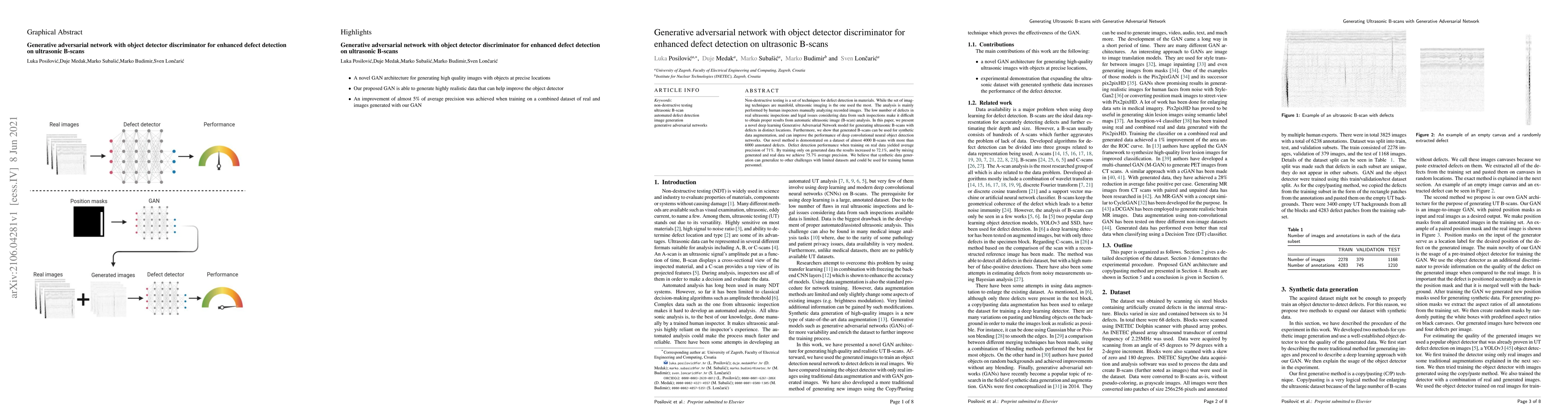This paper introduces a Generative Adversarial Network (GAN) with an object detector discriminator to enhance defect detection in ultrasonic B-scans. The study demonstrates that synthetic B-scans generated by the GAN can augment real data, improving the performance of deep convolutional neural networks for defect detection, achieving an average precision of 75.7%.