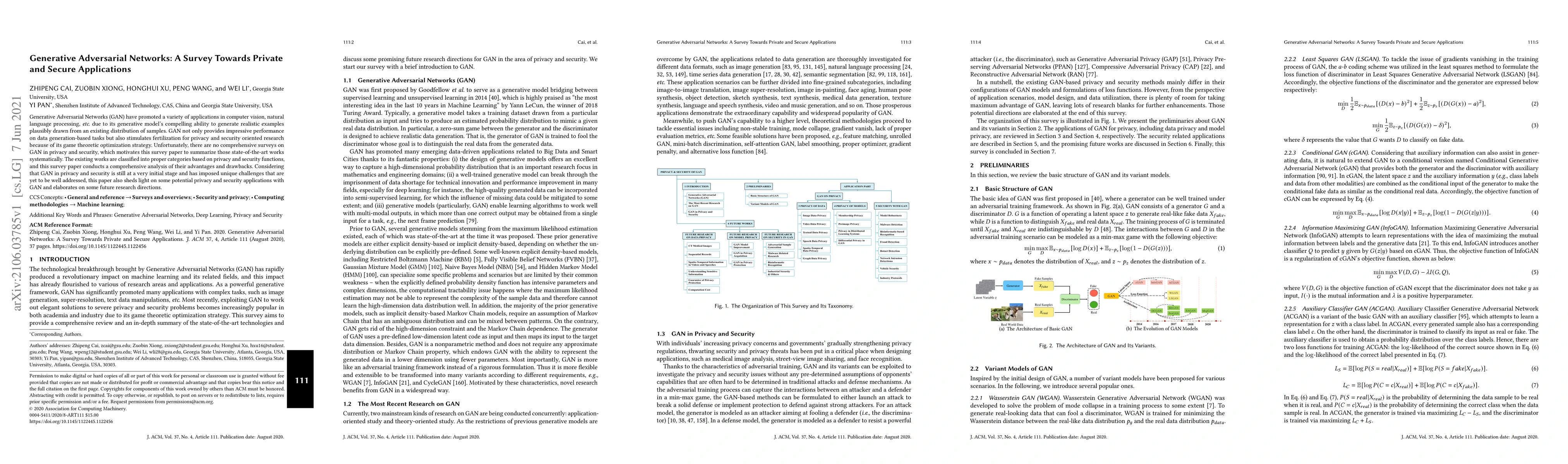 This survey paper systematically summarizes state-of-the-art works on Generative Adversarial Networks (GAN) in privacy and security, classifying existing works into proper categories based on privacy and security functions, and analyzing their advantages and drawbacks.