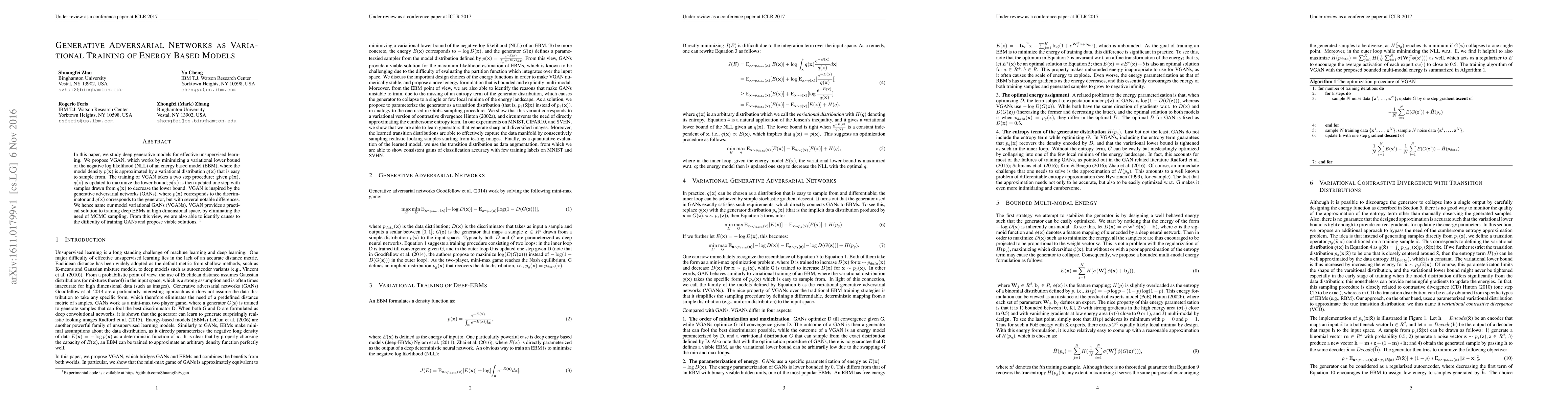 This research paper introduces Variational Generative Adversarial Networks (VGANs), a new approach to training deep generative models for effective unsupervised learning, offering a practical solution to the challenges of training energy-based models in high-dimensional spaces.