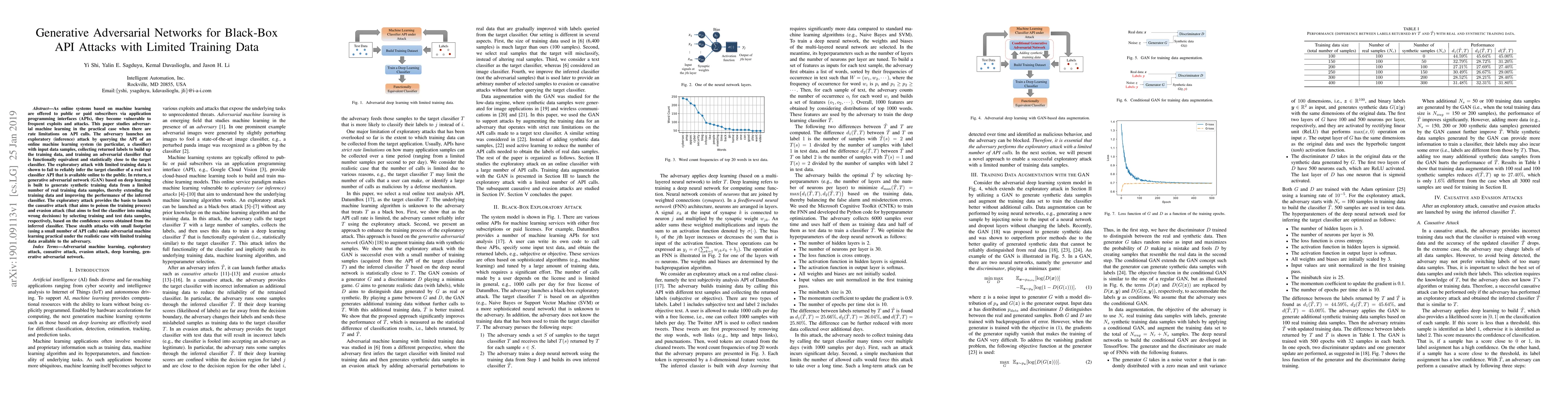 This paper investigates black-box API attacks on machine learning systems under rate limitations, demonstrating that exploratory attacks with limited training data fail. It employs a generative adversarial network (GAN) to synthesize training data, enhancing the adversarial classifier's performance and enabling practical stealth attacks like poisoning and evasion.